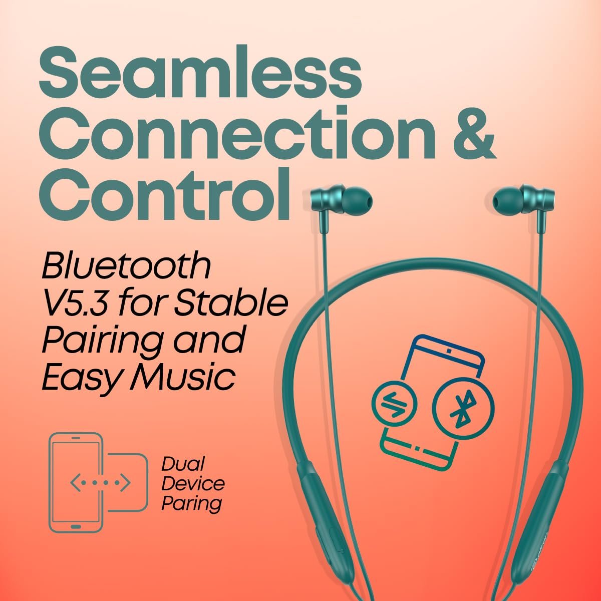 Ergonomics with a lightweight sturdy built (just 26gms) | Wireless Earphones with mic & Bluetooth 5.3 for seamless 10-meter connectivity, Quick pairing, Dual-device paring & broad compatibility.