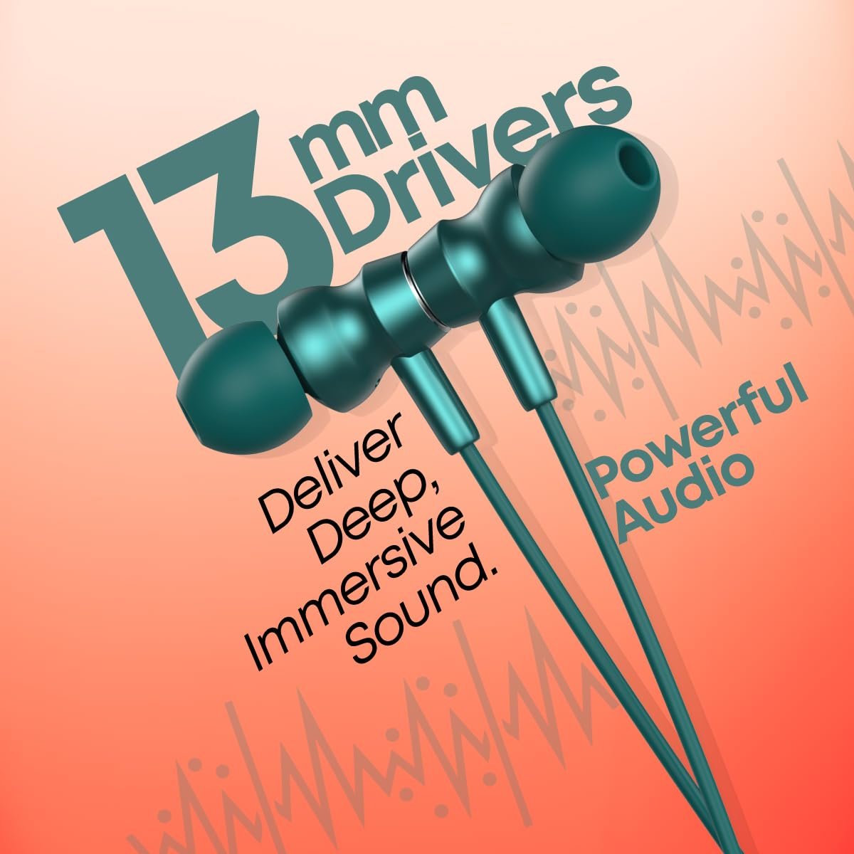 Large 13mm dynamic drivers ensure Hi-Fi stereo sound with Deep bass and an In-line HD microphone for crystal clear call quality.
