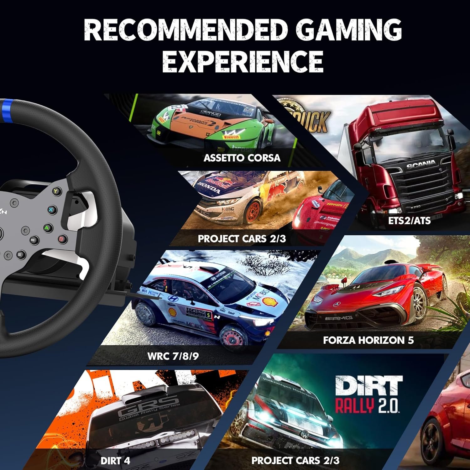 [ Compatibility Racing Game]: You can use PXN-V99 feedback racing wheel play lots of great video games, “Assetto Corsa Competize”,”European Truck Simulation 2″, “Project Cars 2″,”WRC 9″,”Dirt Rally 2.0”, “RFactor 2”, “F1 2020” , “Beamng.drive”, “Automobilista 2”,Super Route and other games.No worry about the Compatibility.