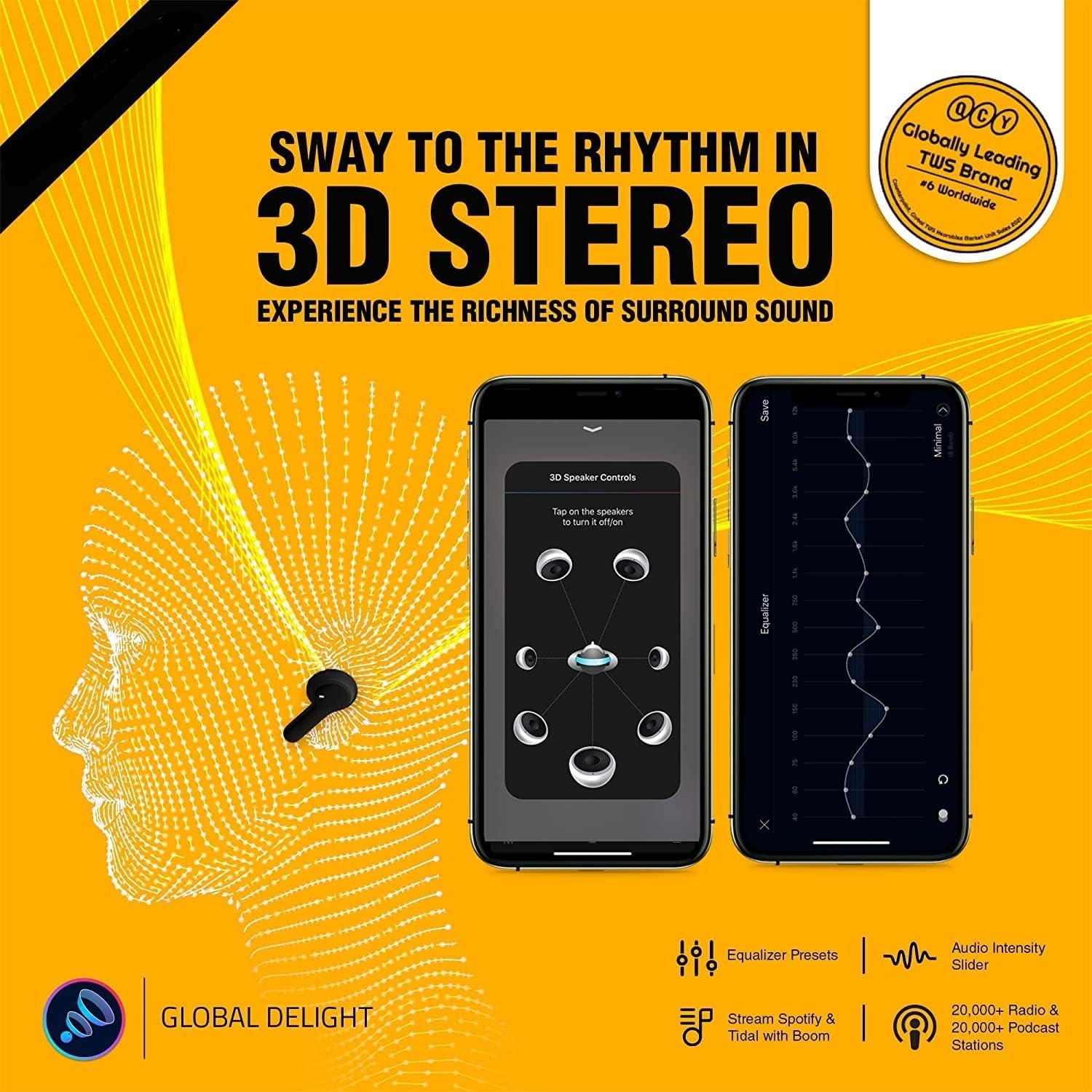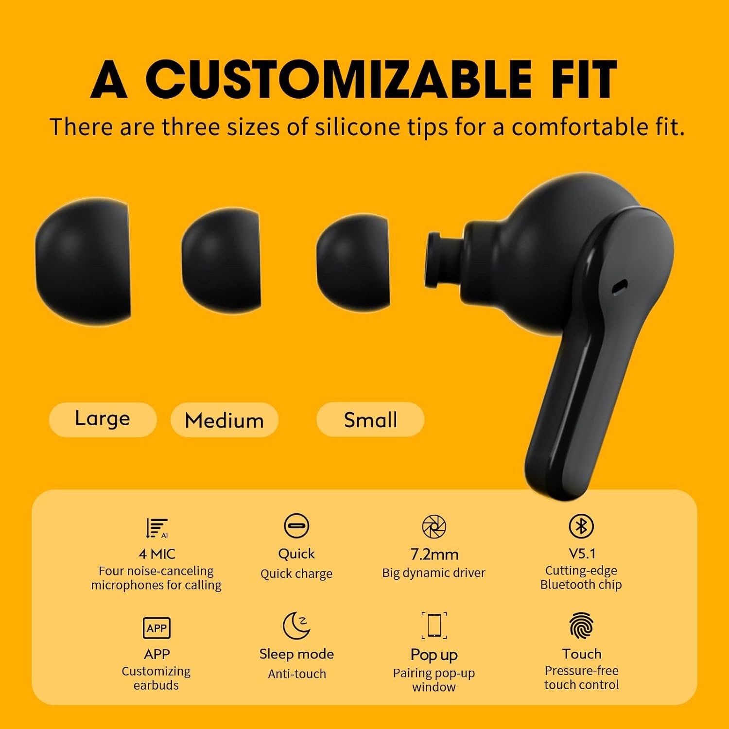 Touch Control: Intelligent Touch control for Pause/Resume, Answer/End, Skip, Reject calls, Voice Assistant