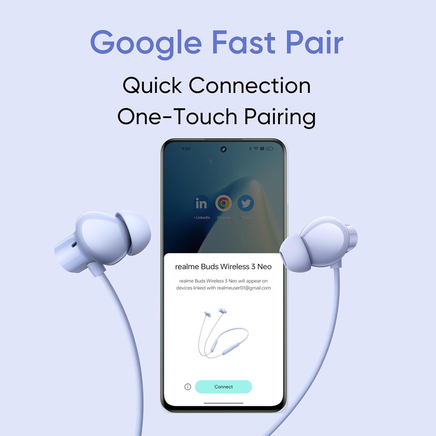 Experience hassle-free connectivity with Google Fast Pair and enjoy uninterrupted music playback on your Buds Wireless 3 Neo. Ensure seamless, effortless and quick pairing pairing with your smartphone using Google Fast Pair feature.