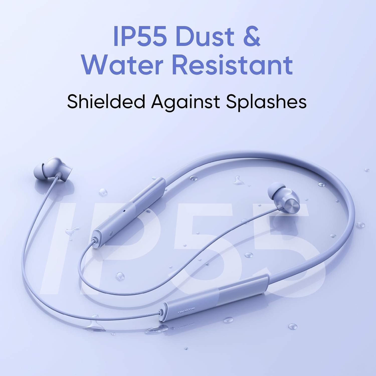 realme Buds Wireless 3 Neo features an IP55 rating for water resistance, making it effective against sweat and splashes. Now you can confidently use the neckband during workouts or in light rainy conditions without worrying about moisture damage.