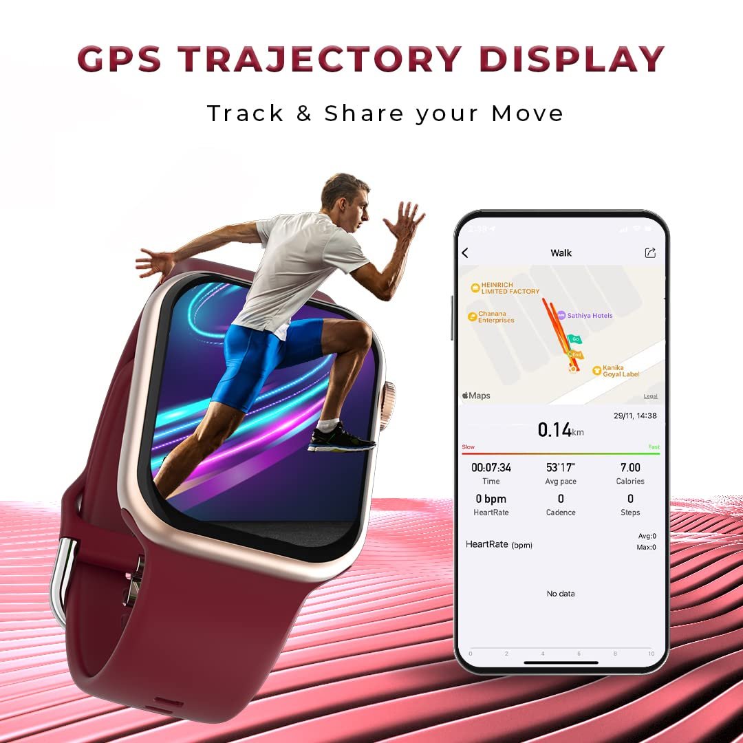AI Voice Assistant & GPS Trajectory: With built-in Voice assistant(Google & Siri Track), you can simply speak to the smartwatch & get things done on your command, Check your GPS trajectory from your smartwatch as you engage in any outdoor activity – running, hiking, and more.