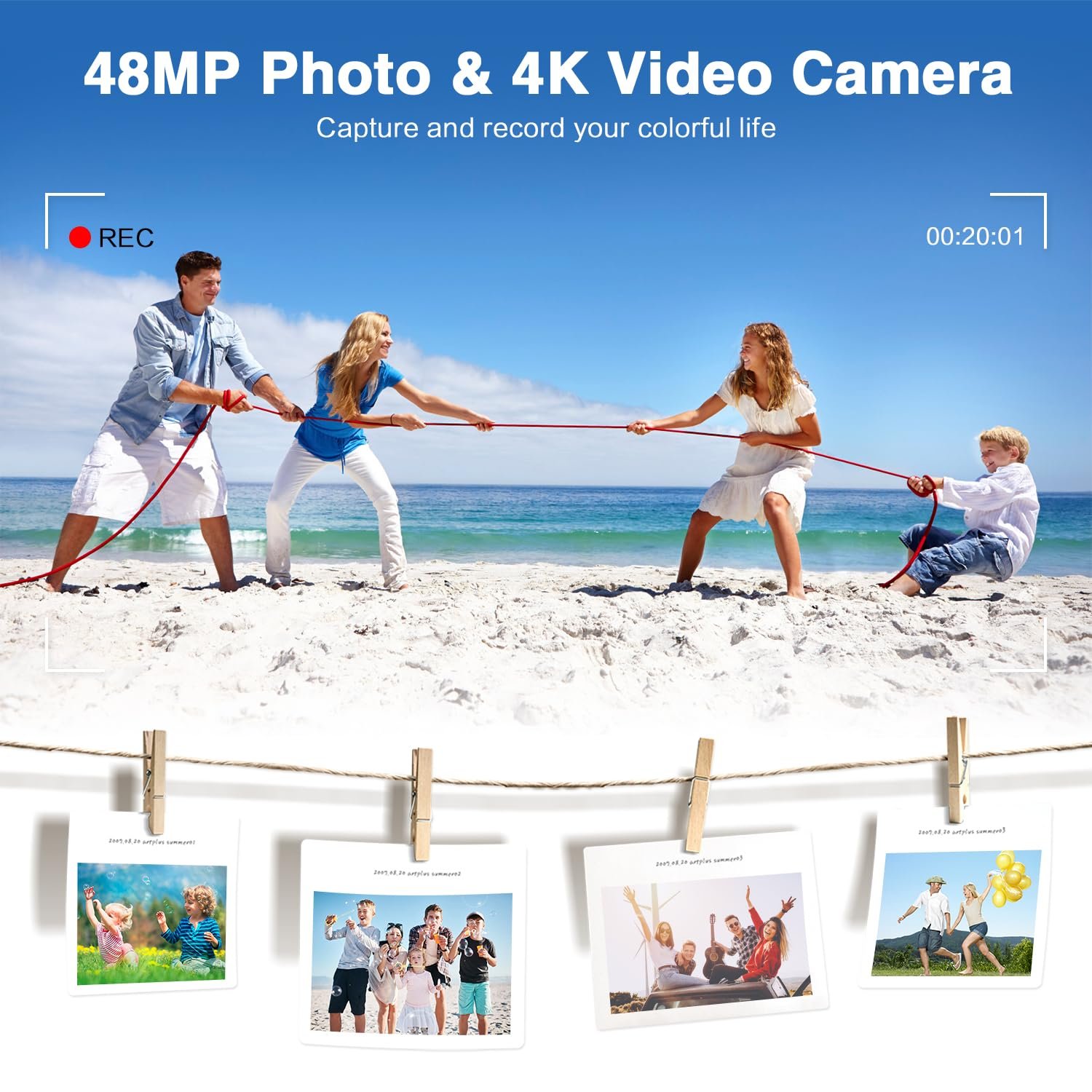 【Multifunctional digital video camera】This 4K digital camera for photography, has multiple powerful features, like Face Recognition, Smile Capture,Anti-shake, Continuous Shooting, Selfie Timer, built-in falsh.