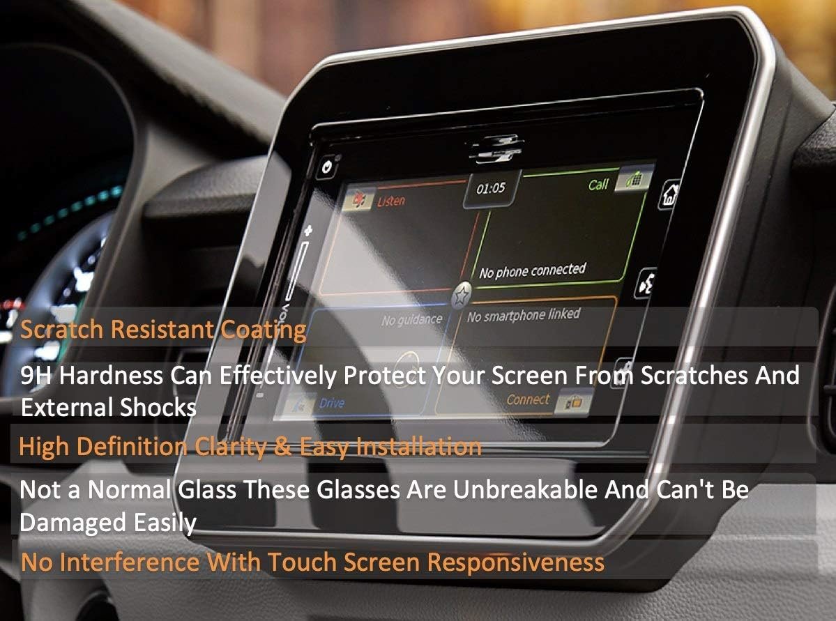 😁NOTE :⭐Material: 9H Hardness Unbreakable (NOT Tempered Glass) ⭐Color : Clear ⭐ Package includes: Screen Protector + Cleaning Cloth + Wet wipe + Bubble remover ⭐ Features: ✔ The product is identified with the professional laser cutting, which used the environmental protection materials to cover your Car Infotainment System screen precisely. No bubbles left when using it properly ✔ HD, 9H Hardness and Ultra-thin help your screen easier to be seen and prevent your screen from dust, oil, water and scratch. Just wipe lightly with our auxiliary tools when it becomes dirty ✔ Automatic adsorption helps you install easier ⭐ How to install? 👉 ① Wash your hands thoroughly, keep them clean and dry. 👉 ② Clean your navi screen with the Alcohol Prep Pad 👉 ③ Wipe the screen dry with the Micro-Fiber Cleaning Cloth, no dust, water or other residues left. 👉 ④ Use dust removal stickers to make surface dust disappear, make sure of the placement before removing the backing 👉 ⑤ Put the suction cup toward the corners of the protector, squeeze the suction up with a little force.
