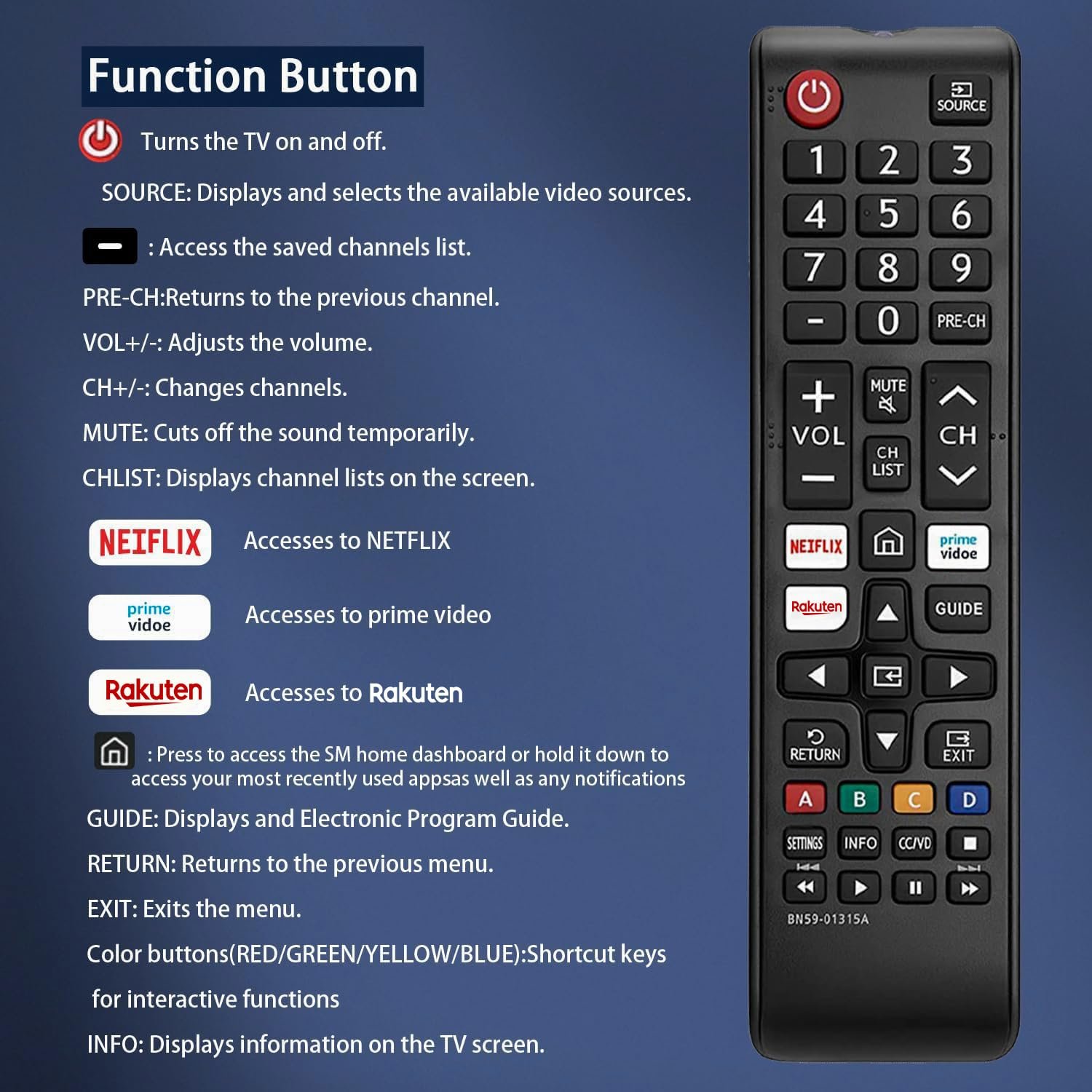 ✨ Samsung remote controls for smart tv: This samsung smart remote replacment Samsung remote controls for smart tv Samsung smart TV models, includingsamsung tv remote control replacement. The remote control Samsung remote control services like Netflix, Prime Video, and Rakuten TV.