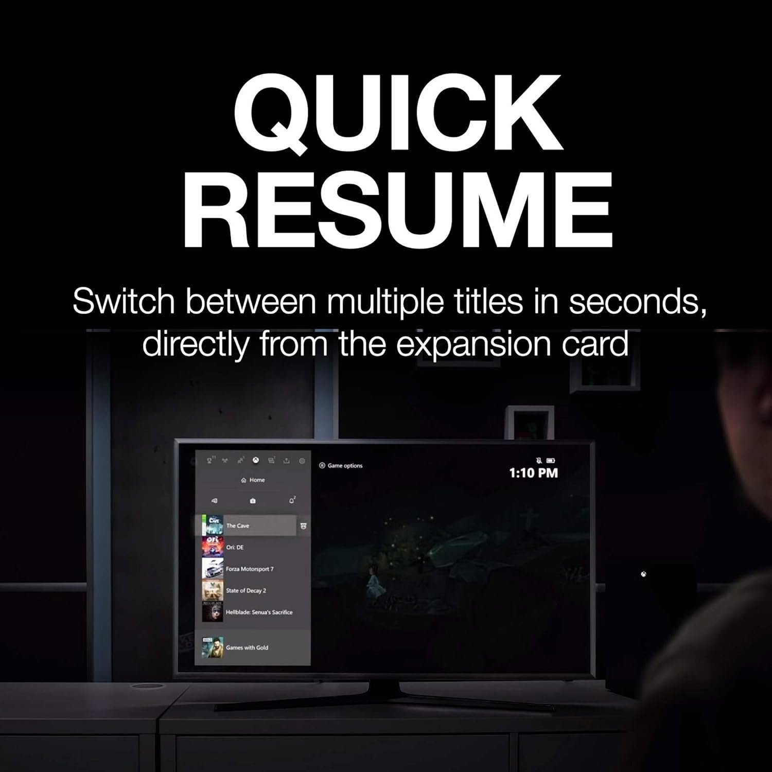 EXCLUSIVE TO XBOX The only available expansion card that replicates the Xbox Velocity Architecture —providing faster load times, richer environments, and more immersive gameplay