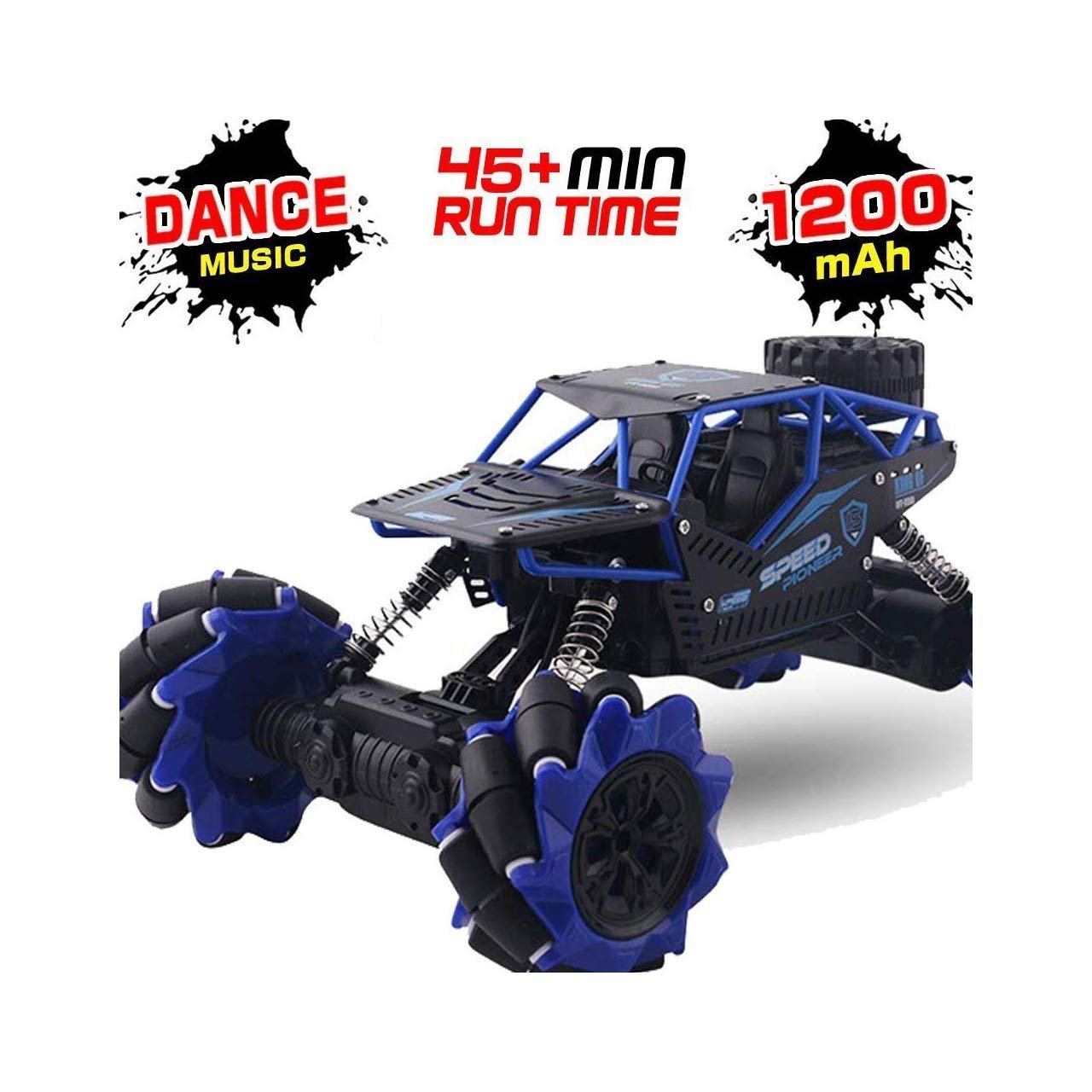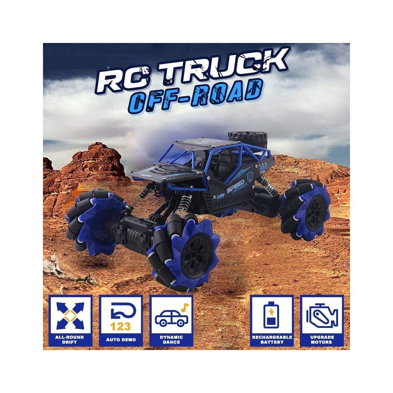 SimmSimm RC Drift Climbing Car Rock Crawler Monster King 1:16 Scale Electronic RC Radio Remote Control High Speed Stunt Monster Car with Rechargeable Battery (Blue) Toys for Boys