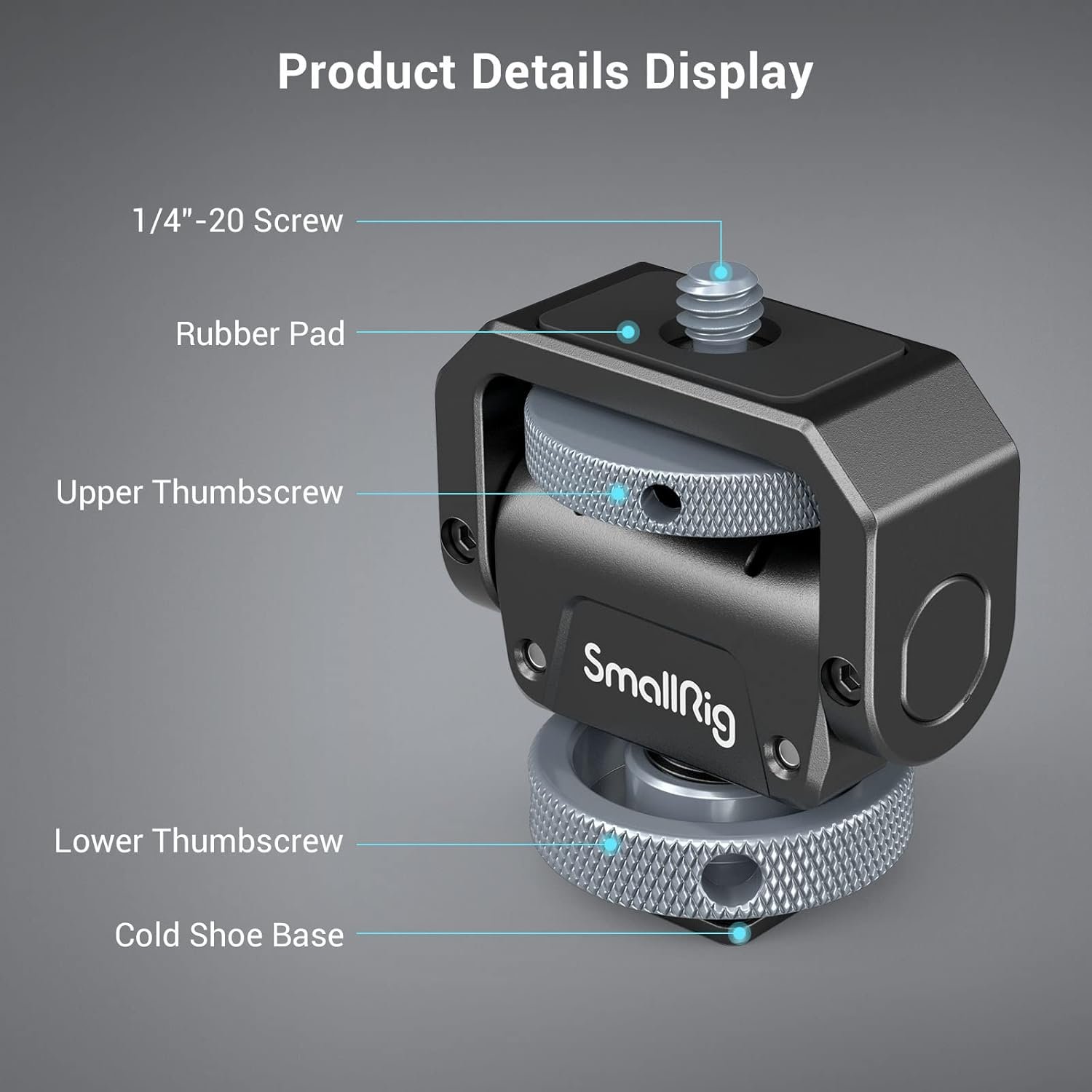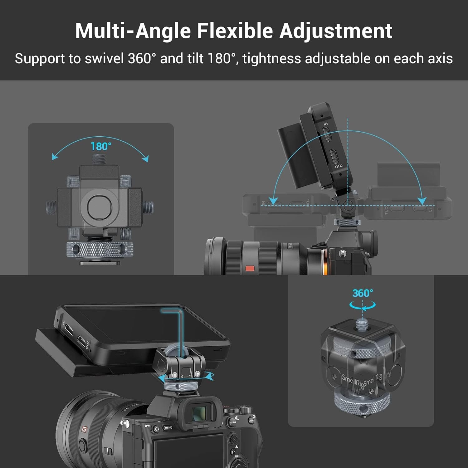 SmallRig Camera Monitor Mount Lite with Cold Shoe, Swivel 360° and Tilt 180° Holder for Field Monitor, LED, Flash and Video Shooting Photography Accessories, Max Load Capacity of 90° Tilt 3.2kg – 3809