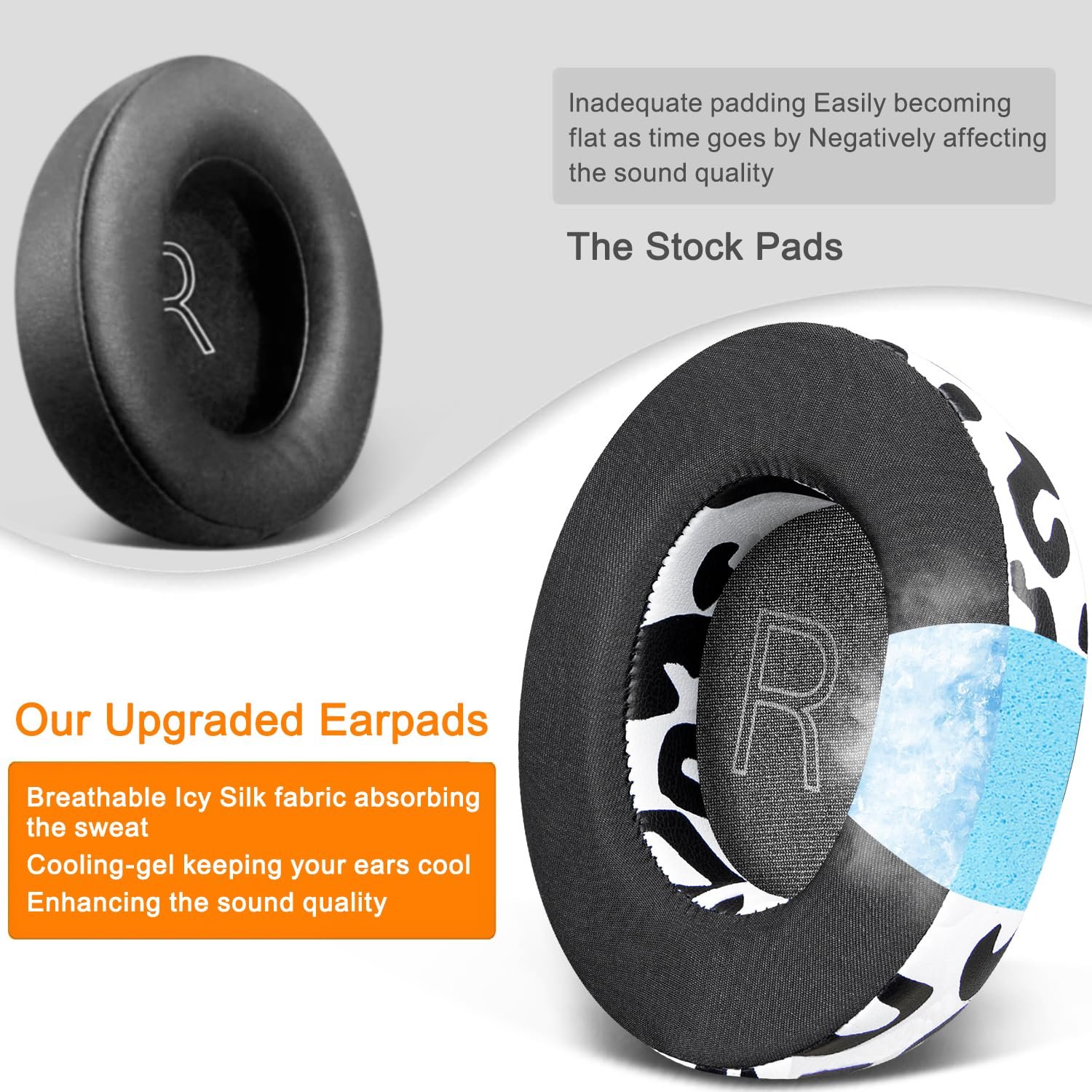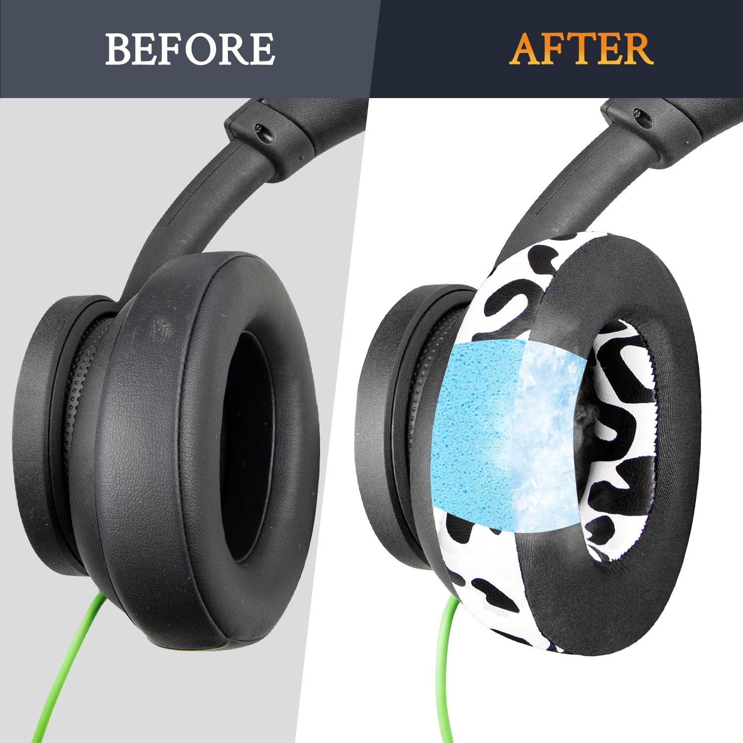 🎧Keep Your Ears Cool: The Soft Cooling-gel is added under the top layer fabric (breathable Ice Silk fabric) of the earpads, absorbing the sweat in the summer days and keeping your ears cool after a long time of use.