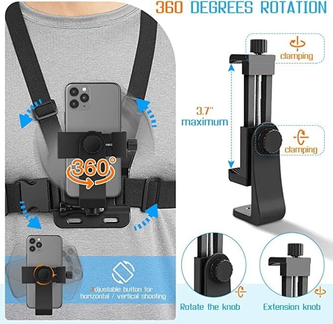 Sounce Mobile Phone Chest Strap Mount GoPro Chest Harness Holder for VLOG/POV Compatible with All Cell Phones and GoPro Hero 9, 8, 7, 6, 5,OSMO Action, AKASO and Other Action Camera
