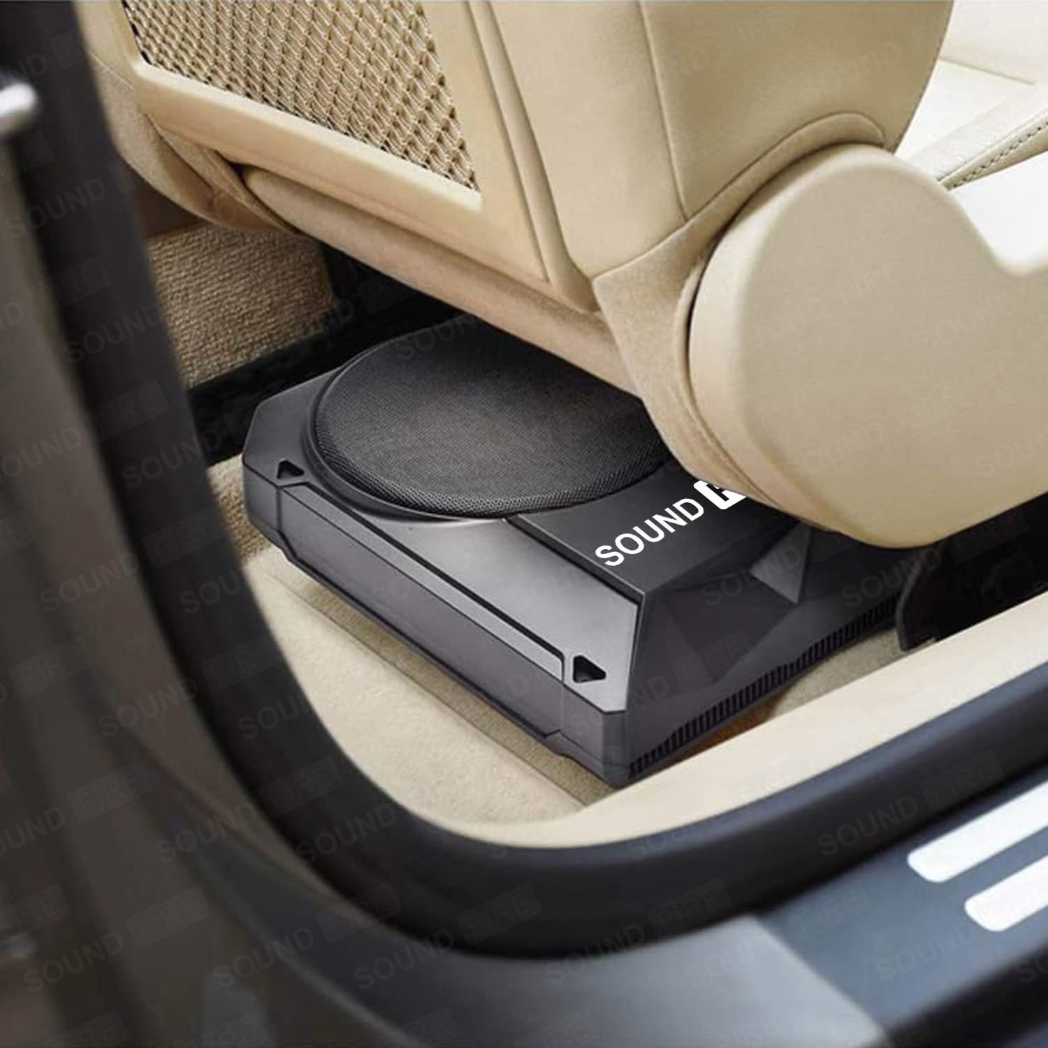 die-cast aluminum enclosure with 10″ shallow-profile woofer