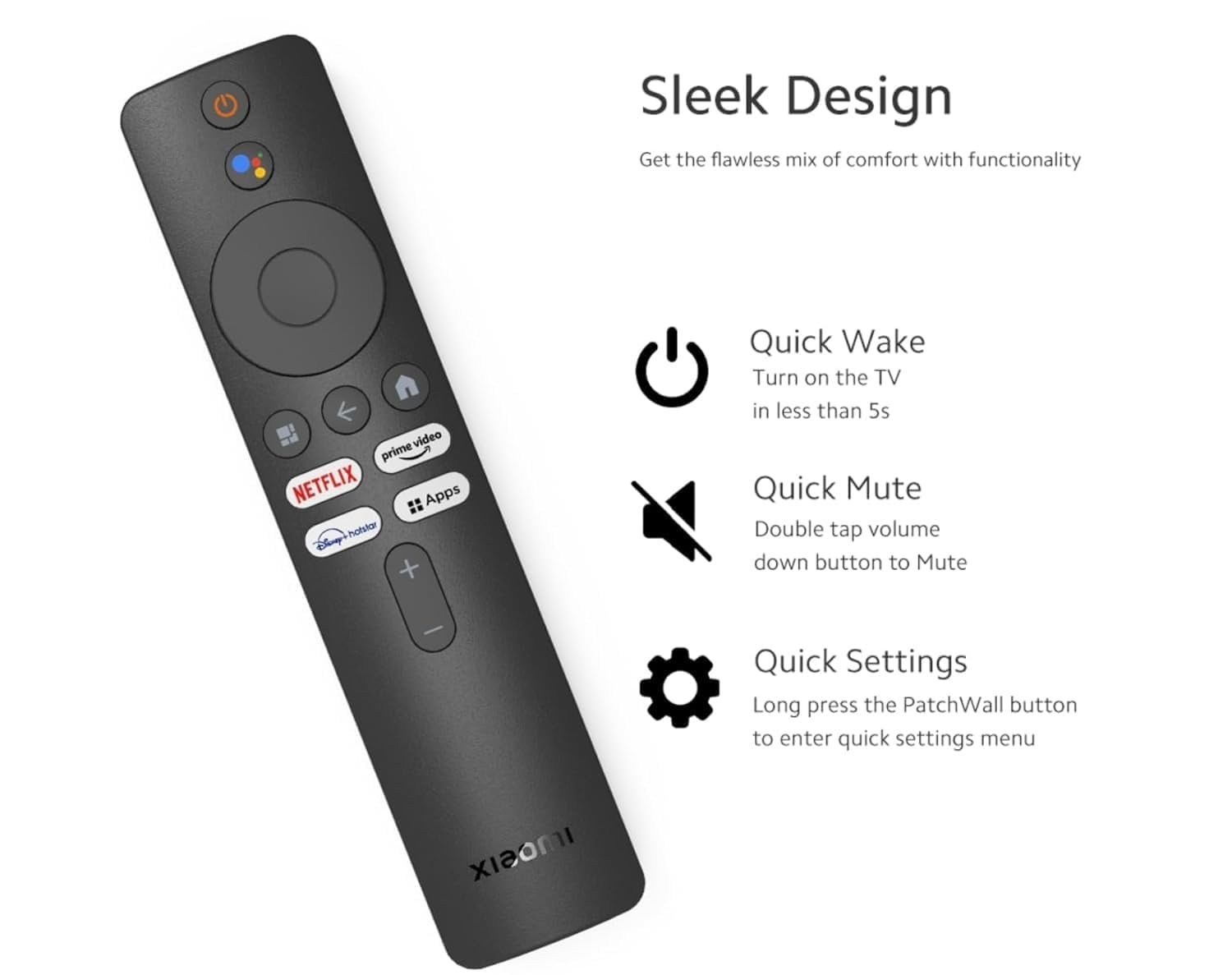 Compatible Remote Control for MI TV Xiaomi Smart TV with Voice Function and Disney Hotstar, Prime Video, Netflix, Functions(Bluetooth Remote)