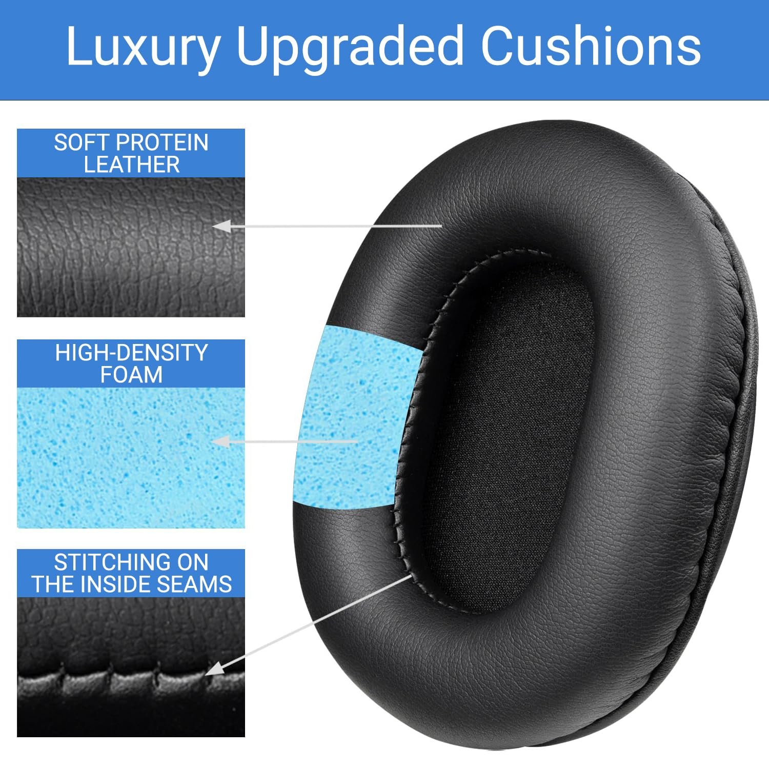 Crafted with faux leather and density memory foam, providing durability, comfort, and excellent noise isolation