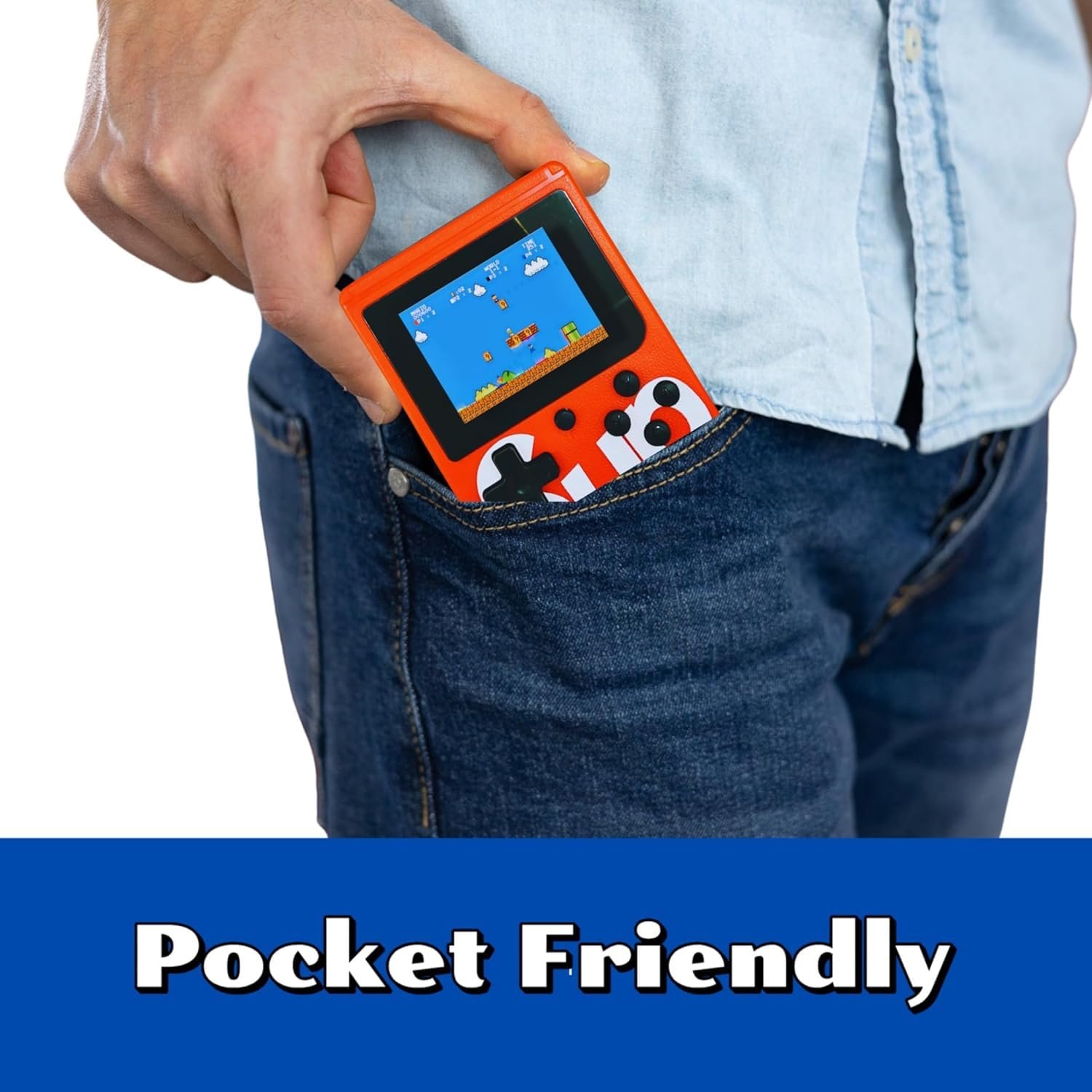 Retro Handheld Game Console has 400 games: Arcade Retro Games, Logic & Math, Sports, Tetris, Puzzle, Arcade, Shooting, Action, Racing, Fighting, Strategy, Adventure, Encourage interactive play with hand video games for kids, featuring educational and entertaining experiences that promote learning and creativity