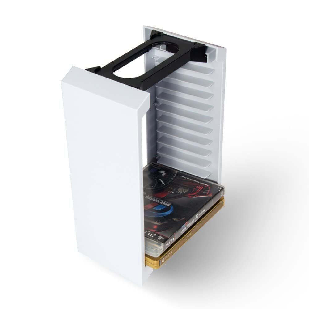 【Game Accessories Organizer】: This game disc storage tower can hold up to 12 game cartridges (excluding game discs). This game organizer is compatible with PS5 and can be used as a vertical stand and organizer.