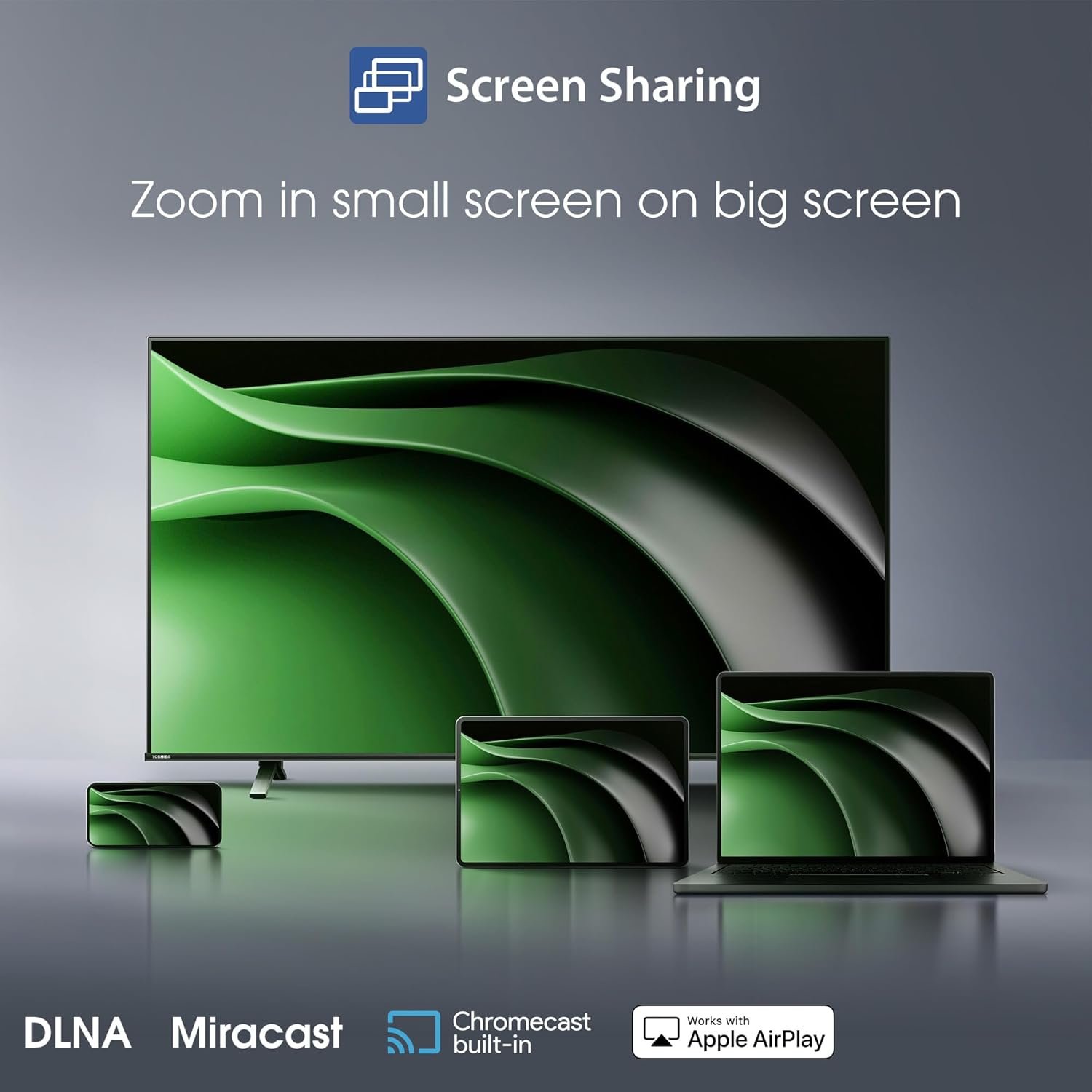 Smart TV Features: Google TV | Google Assistant | Voice command | Screen mirroring: DLNA, Chromecast, Miracast, AirPlay | Sleep Timer | On/Off Timer | Supported Apps: Netflix, YouTube, Prime Video, Hotstar, SonyLiv, Hungama, JioCinema, Zee5, Eros Now