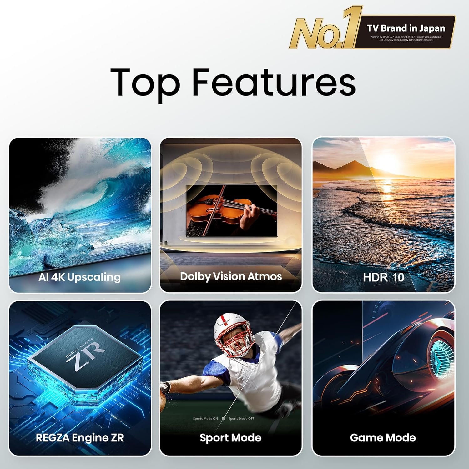Sound: 24W Audio Output | Dobly Atmos | Audio equalizer | Dolby Digital | Lip-sync adjustment | Sound mode:Standard, Theatre, Sports, Music, Speech, Late Night