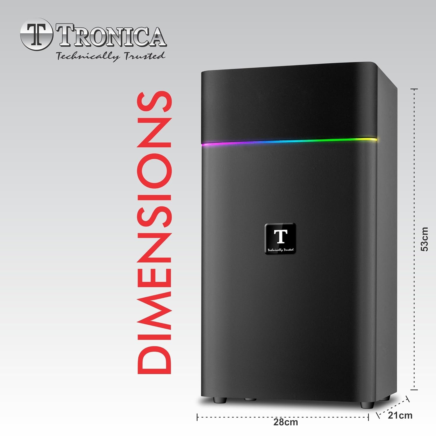 • Sleek and stylish, the Tronica Boom Box is designed to complement any home decor with its modern aesthetic. Whether placed in your living room, backyard, or party venue, its eye-catching design and powerful performance make it the focal point of any gathering.