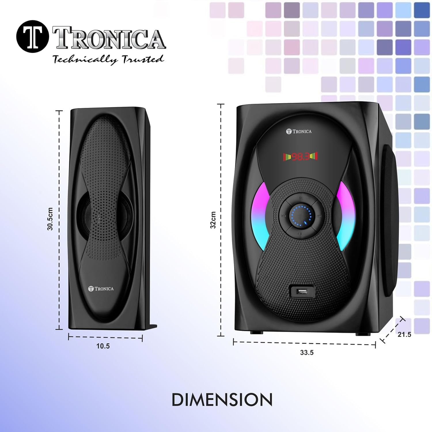 EN-777 with a digital encoder system, is well above all digital systems,with one touch knob controlling the volume bass treble of this bass station. En-777 is the new model of tronica similar in circuit of BT-444 & BT-555, same sound,same wooden,same circuit but with ENCODER! Welcome to a world of clarity. A good set of 4.1 speakers will sound distinct even at first listen. The Tronica EN-777 design allows for a truly rich sound from within, featuring sound that is clear and suited for smaller spaces. With high-quality components, it’s a system that doesn’t lack in quality or audio – it has everything you need for cinema-quality excitement. These satellite speakers provides an enhanced punch of little bass along with high decibels. This modification has improved the sound parameters widely. A set of 4 satellite speakers and 6″ sub woofer enables you to experience theatrical effect. Supports Pendrive/SD card Reader/FM/AUX/mobile/Bluetooth. The speaker has in-built FM with preset channels and also automatic/manual tuning for you to enjoy music. The High-Resolution Mood Lights look spectacular while you play some of your favourite hits.