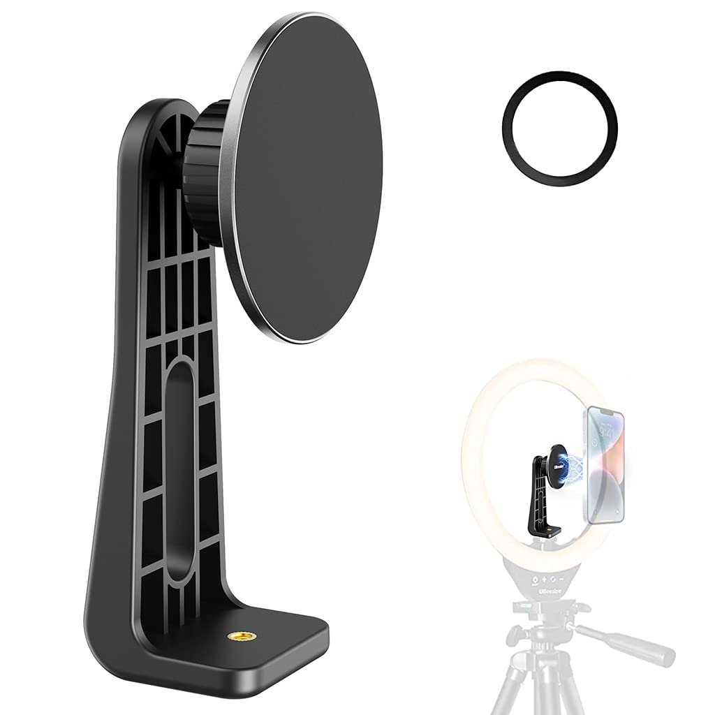 FULL VIEW FOR YOUR RING LIGHT: The magnetic phone tripod holder for selfie tripod stand features a strong magnetic design that ensures your phone can be firmly attached to the holder. The magnetic tripod mount has a ball bottom that can rotate 360°, allowing you to adjust it to any angle you prefer. This tripod phone holder will provide full view access for your ring light, making it perfect for live-streaming, selfies, video-shooting, or makeup fill light purposes.