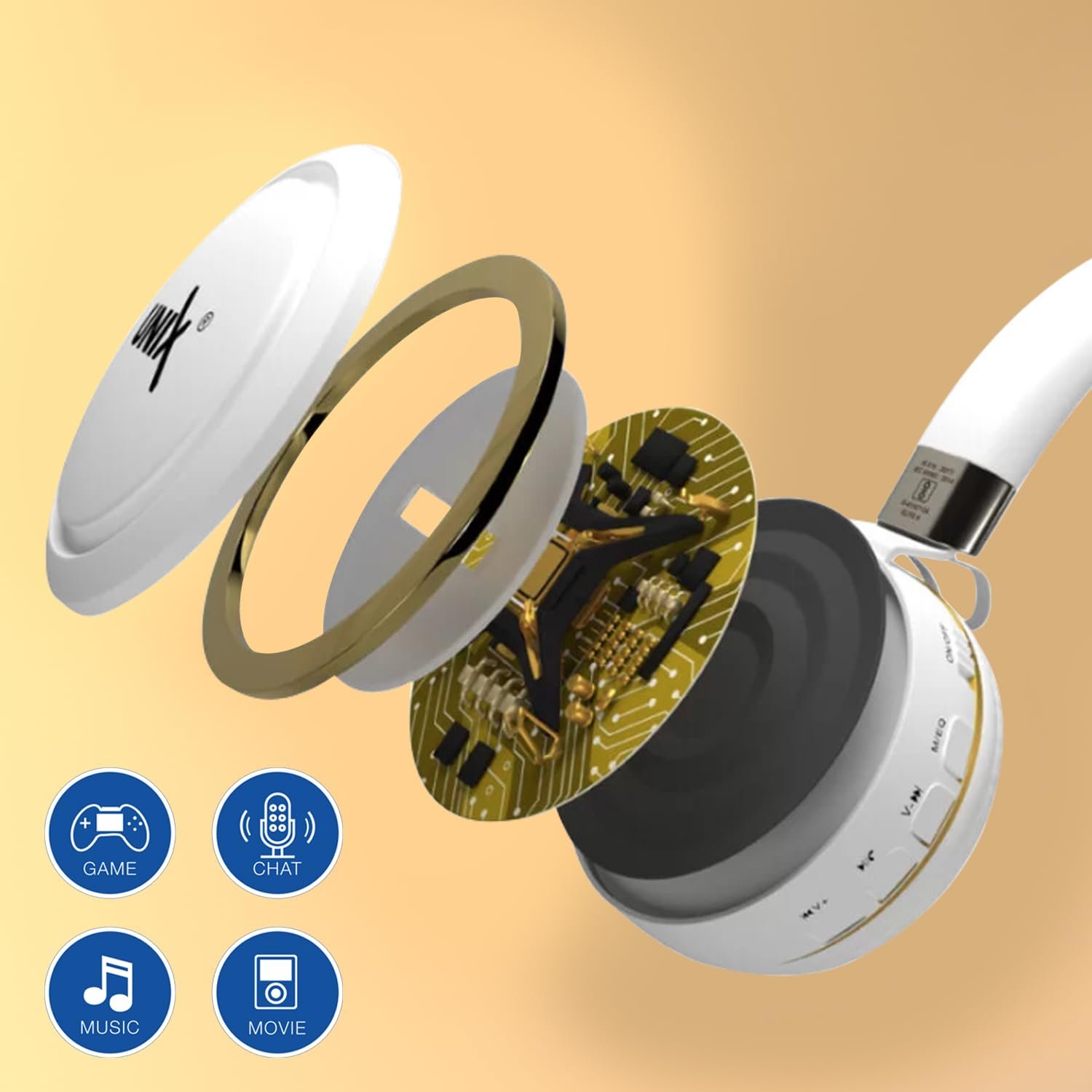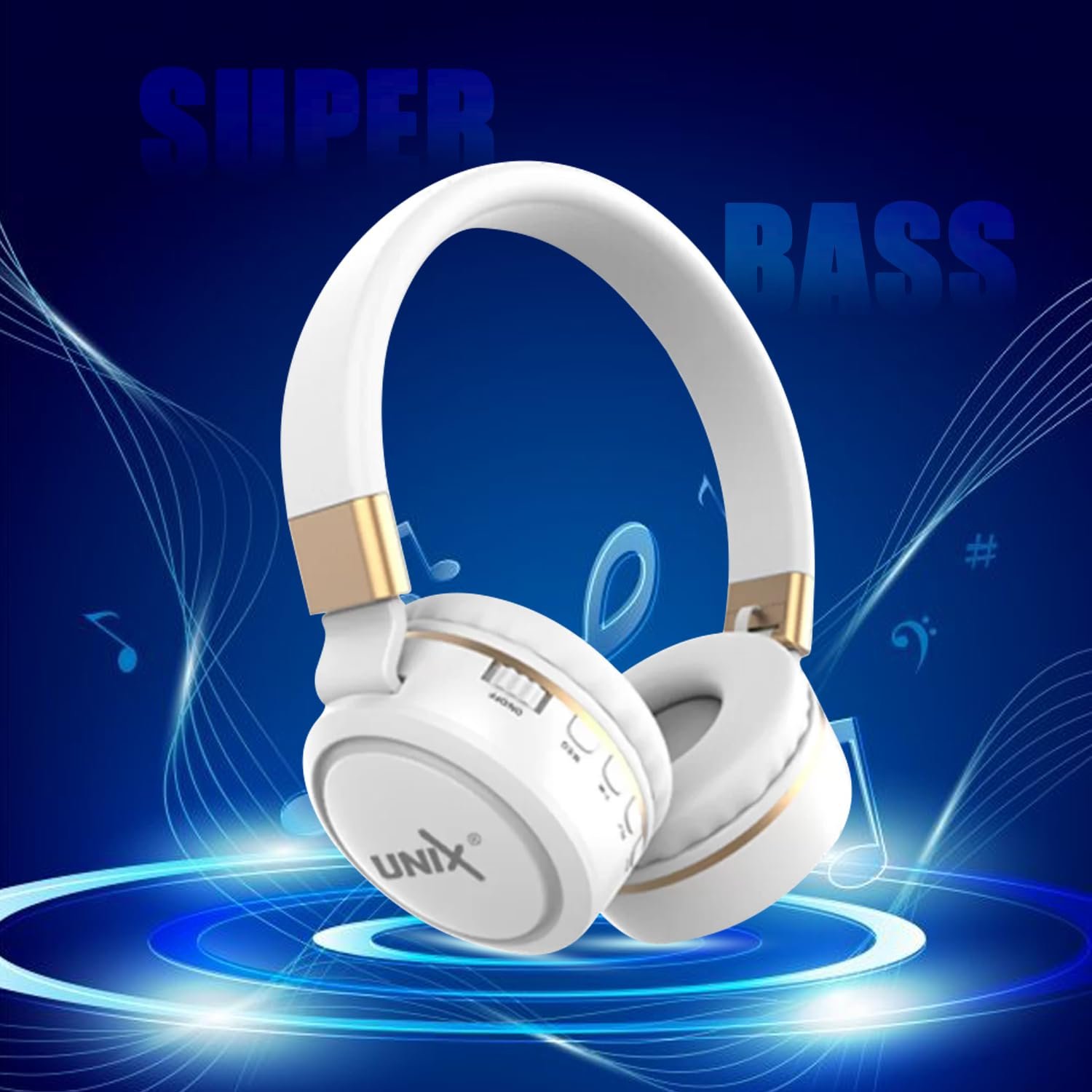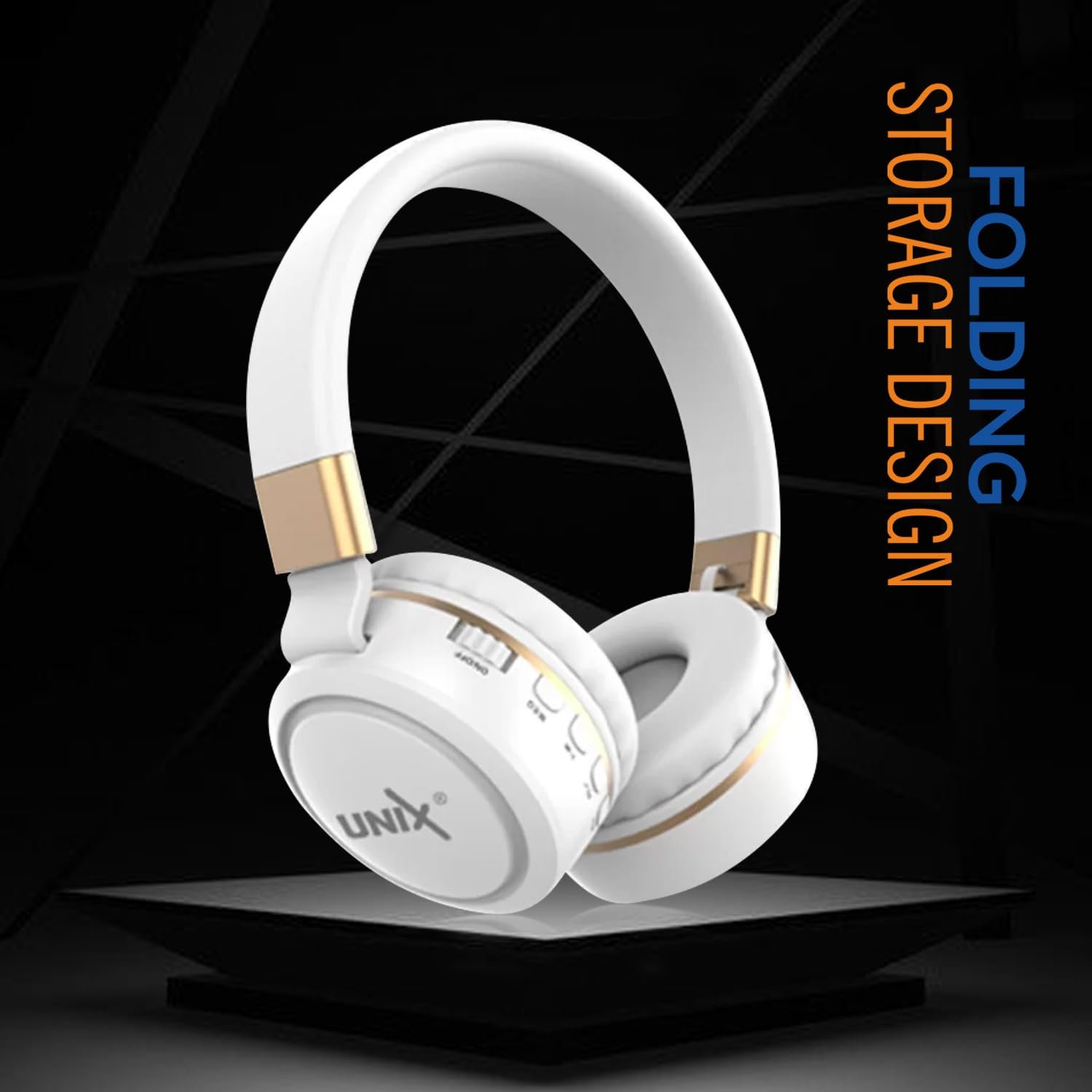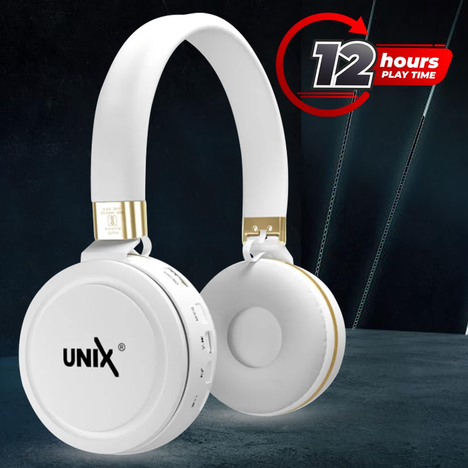 Unix Over The Ear Wireless Bluetooth Headphones with Mic, Deep Bass, Foldable Headphones, Upto 8 Hours Playtime, Workout/Travel, Bluetooth 5.0 (White, On The Ear)