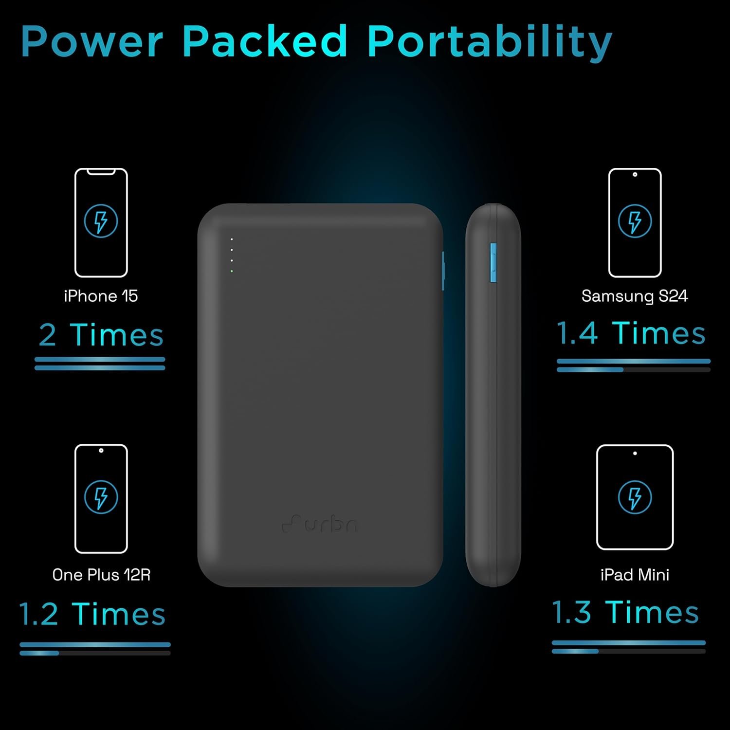 Elevate your charging experience with the URBN 10000 mAh Nano Slim Power Bank – a powerhouse of innovation designed to keep your devices charged and ready for action. Crafted with precision and passion in India, this power bank is more than just a charging accessory – it’s a reliable companion for your on-the-go lifestyle. Key Features: Ultra-Slim Design with High Capacity: Don’t let its sleek profile fool you. The URBN Nano Slim Power Bank packs a mighty 10000 mAh capacity, ensuring that you have ample power to keep your devices charged throughout the day. 22.5W Fast Charging: Experience blazing-fast charging speeds with 22.5W fast charging capability. Say goodbye to long waiting times and keep up with your fast-paced lifestyle. Type C PD (Input & Output): Enjoy the convenience of a reversible Type C port for both charging your power bank and charging your devices. The bidirectional Type C PD ensures efficient and rapid power transfer. Two-Way Fast Charge: Charge your power bank and your device simultaneously with the two-way fast charge feature. Never miss a beat, whether you’re on a call or capturing memories on your camera. Wide Compatibility: Compatible with iPhones, Android devices, and more, the URBN Nano Slim Power Bank is your versatile charging solution. Keep all your devices powered up, no matter the brand. Made in India: Support local craftsmanship and quality. This power bank is proudly made in India, contributing to the growth of domestic manufacturing. 12 Months Replacement Support: We believe in the durability and reliability of our product. Enjoy peace of mind with our 12-month replacement support, demonstrating our commitment to customer satisfaction. Why Choose URBN Nano Slim Power Bank? Reliability: Trust in a power bank crafted with precision and built to last. Speed: Experience the convenience of 22.5W fast charging for your devices. Versatility: Charge multiple devices simultaneously with the two-way fast charge feature. Made in India: Support local manufacturing and quality craftsmanship. Customer Satisfaction: Benefit from our 12-month replacement support for added peace of mind.