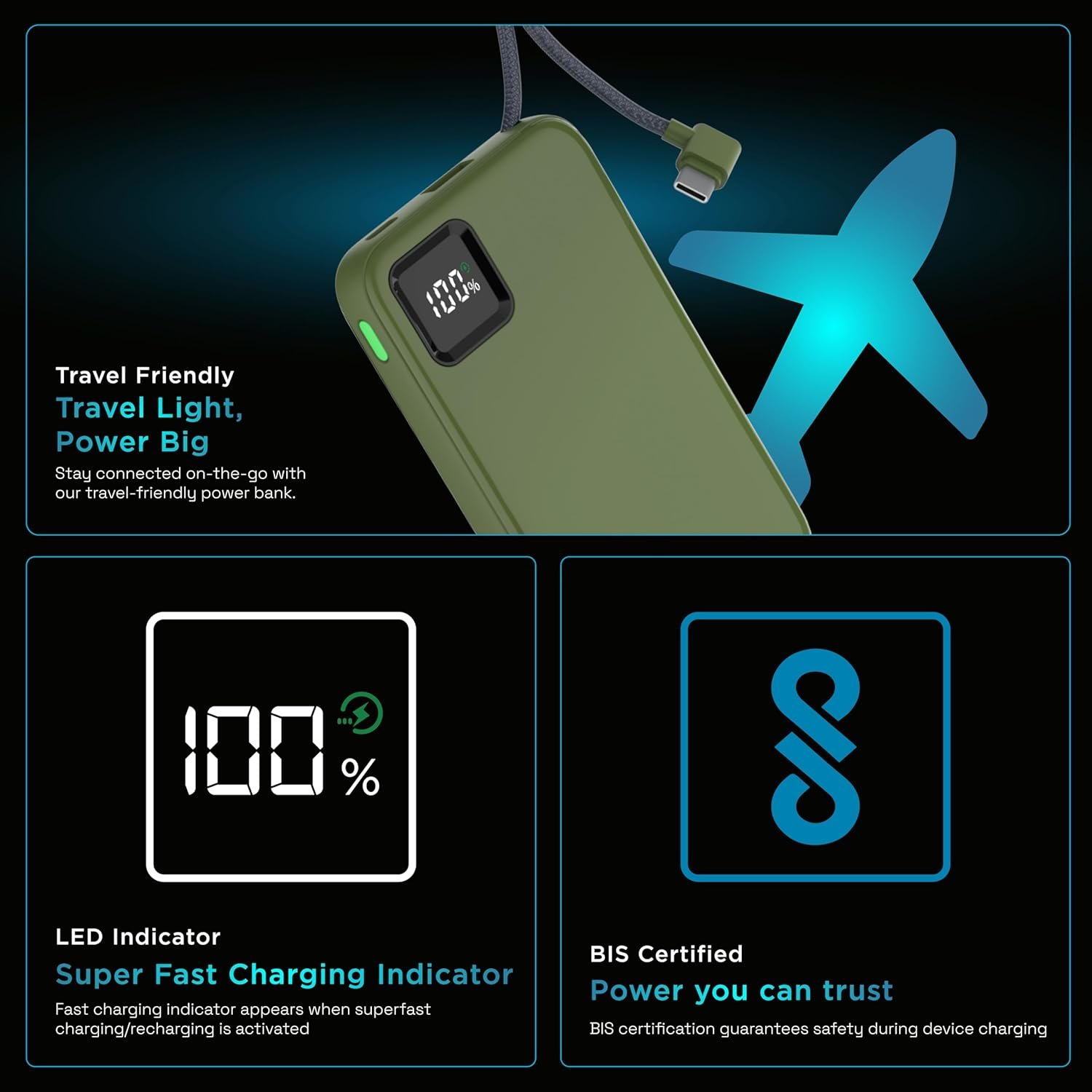 Experience lightning-fast 22.5W Type C PD (Input & Output) charging in an ultra-sleek design. Power-packed performance meets pocket-friendly convenience, ensuring you stay charged on the go without the bulk.