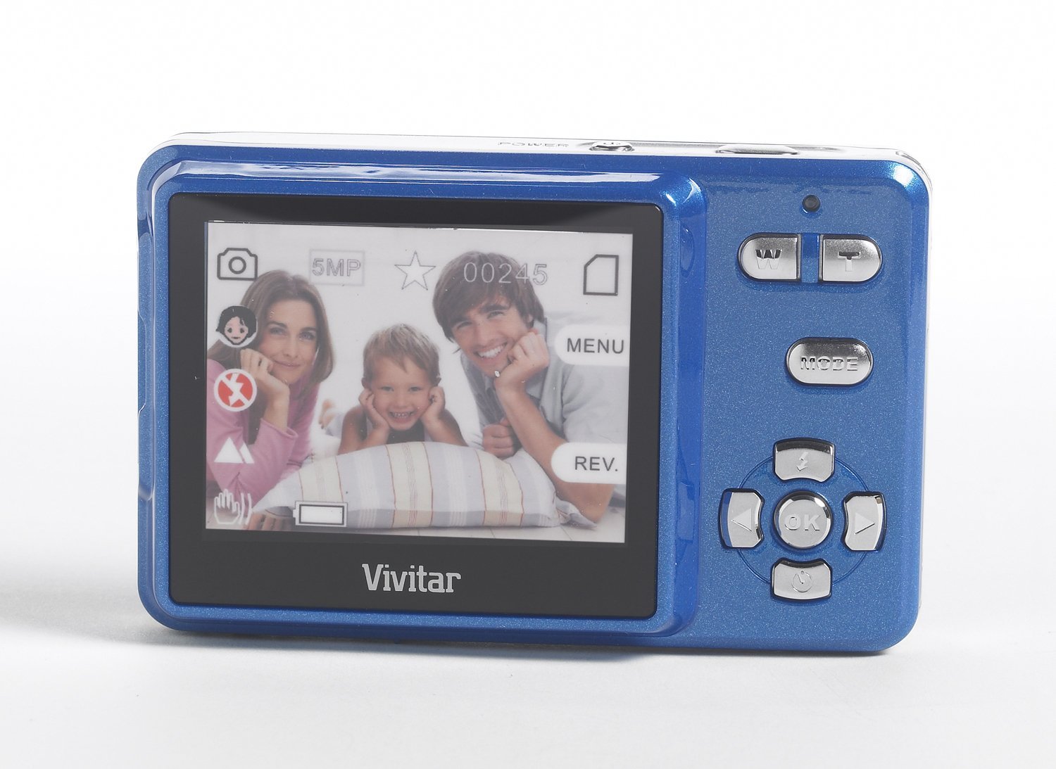 Take photos in style with the Vivitar V54 Red Digital Camera. The 5.1 mega pixel camera boasts face detection, takes videos, and can hold over 100 photos!