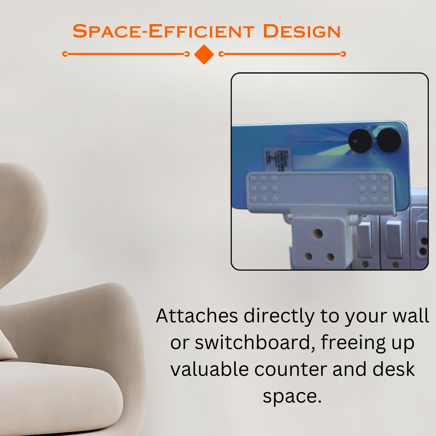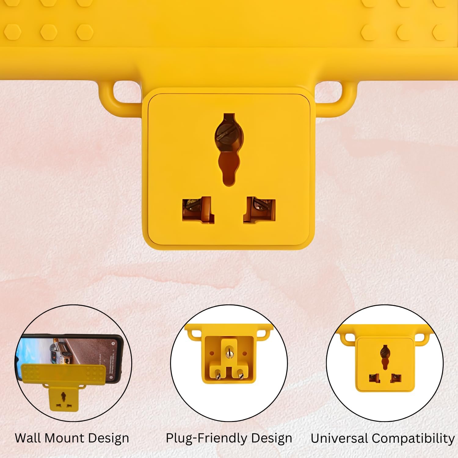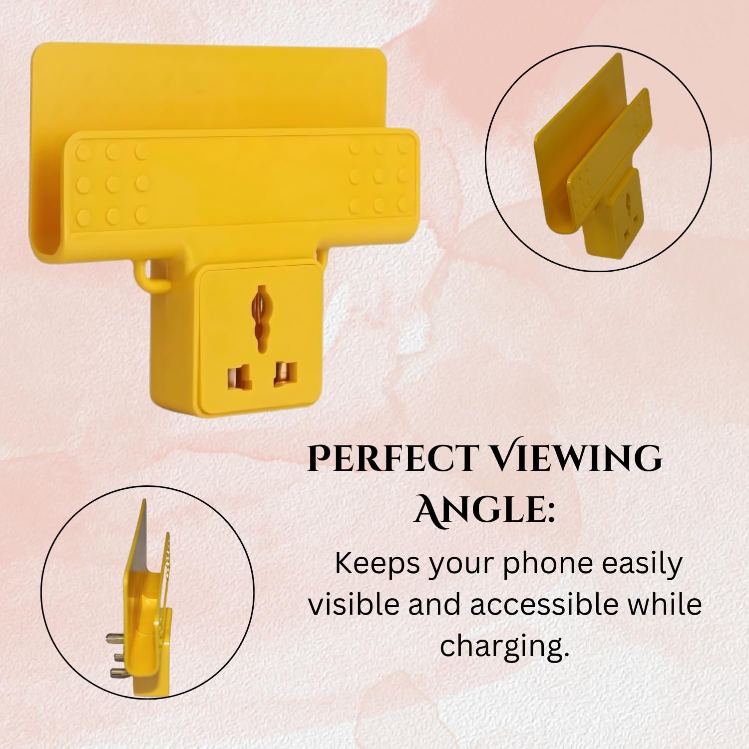 Optimize your charging setup with the Wall Mount Hanging Mobile Charging Holder, designed for convenience and versatility. This portable and practical holder supports a wide range of devices and fits directly into your switchboard plug, offering a streamlined solution for keeping your electronics charged and organized. Universal Charging Support: Compatible with various types of chargers, this holder accommodates mobile phones, powerbanks, smartphones, MP3 players, and more. It provides a versatile charging solution for all your essential devices. Wall-Mountable Design: The holder features a wall-mountable design that helps save counter space and keeps your charging area tidy. Its compact and sleek profile ensures it blends seamlessly with any room decor. Portable and Convenient: Designed for easy portability, the holder can be easily moved and adjusted to different locations as needed. Its flexible design allows you to charge devices in multiple settings, from home to office. Direct Plug-In Installation: Fits directly into a switchboard plug, eliminating the need for additional adapters or power strips. Simply insert the holder into your existing outlet to start charging your devices immediately. Organizational Benefits: Keeps your charging cables and devices neatly organized and within easy reach. The holder’s design helps prevent tangling and clutter, ensuring a cleaner and more efficient charging area. Enhance your charging experience with the Wall Mount Hanging Mobile Charging Holder—a versatile, portable, and space-saving solution that supports a variety of devices and keeps your charging area organized. Mobile charging holder With a sleek design and solid ABS Plastic build, charging holder is your safest smartphone wall holder, and a rest area for your phone [EASY WALL MOUNT]-Easily assembled and installable phone holder, designed to suit all smooth-surface walls such as ceramic wall, glass wall, lime wall, and wallpapers [MULTI-FUNCTIONAL]- Phone holder not only provides a rest area for the phone, but also gives easy access to wall charging point