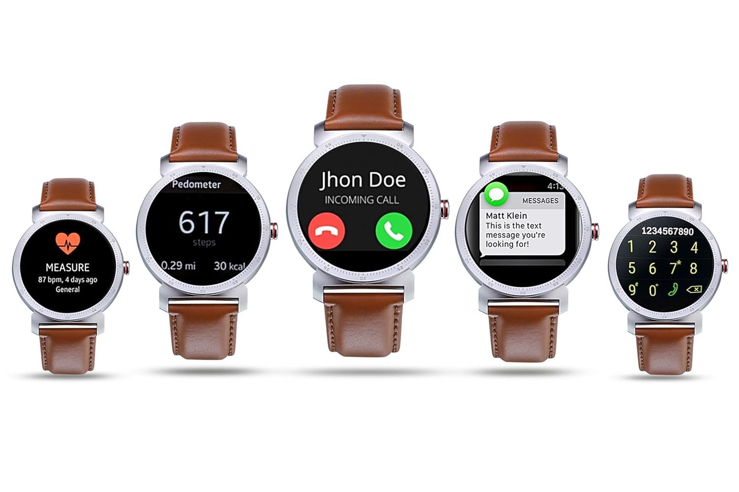 This cool watch can transform your simplest of looks to the trendiest. This magnificent watch with a full round face will astonish you with quality of workmanship and variety of built-in functions. The vivid radian display is surely going to amaze you.Compatible with Android 4.3+ and iOS 7+ CE and RoHS European standard certified. Primary features: Making/receiving phone calls, receive message notifications, changeable band, IP54 water splash proof, Bluetooth 4.0, vibrations, microphone, anti lost, heart rate monitor, sleep monitor, music and camera control, call logs and Sync contacts(upto 500 names)