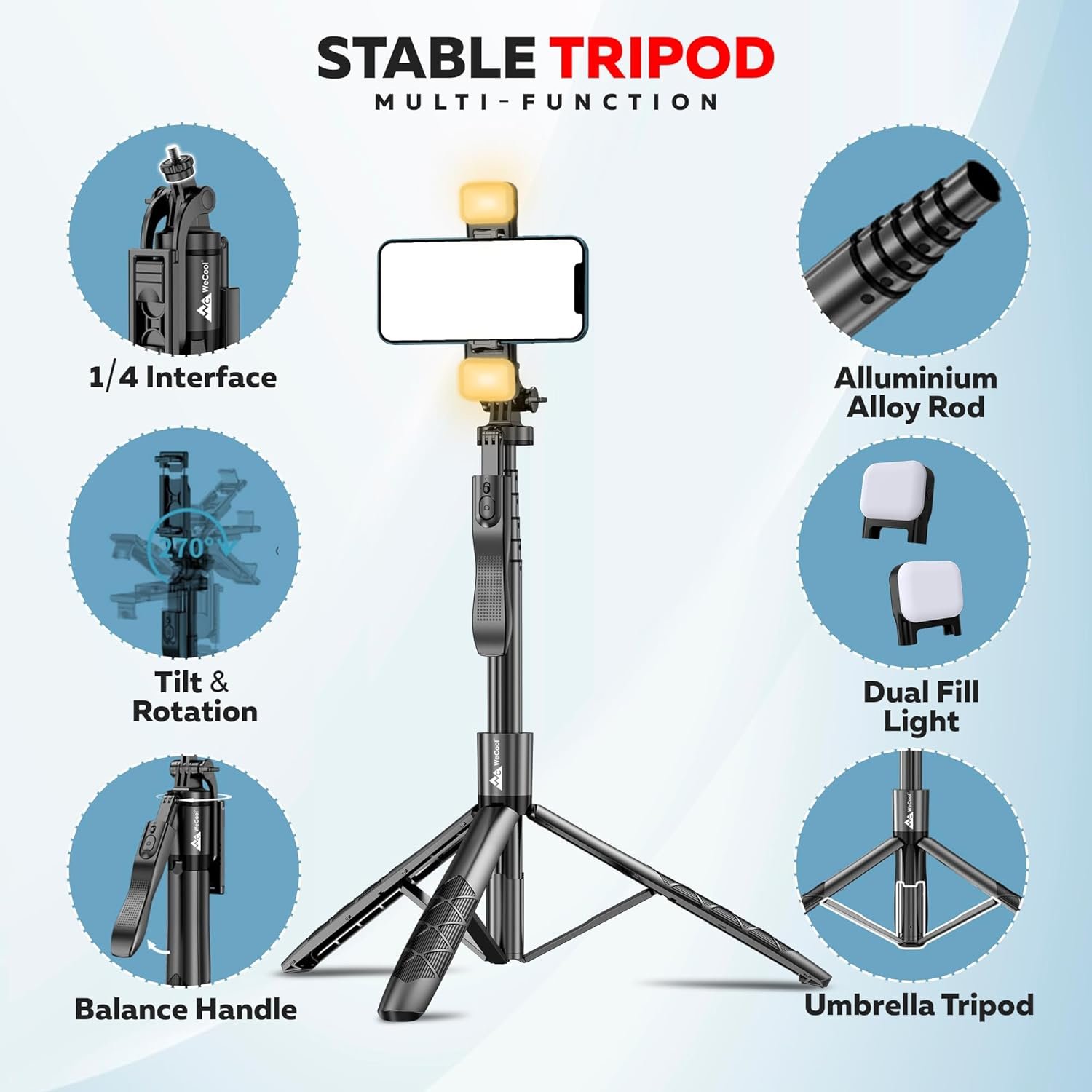 Flexible Shooting Angles: Experience the best shooting angle with 360° horizontal & 180° vertical adjustments. Perfect Selfie stick for live streaming, photos & video recording, achieves excellent stabilization with stable tripod stand in every shot