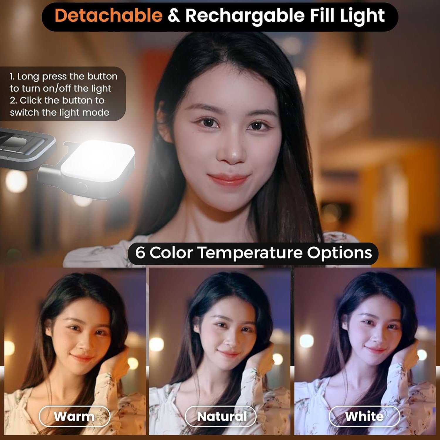 Hands-Free Photography: Experience hands-free long-distance photography with our Bluetooth selfie stick with light and detachable remote. Operate it from up to 33ft/10m away, Our Mobile stick is compatible with all Android and iPhone devices.