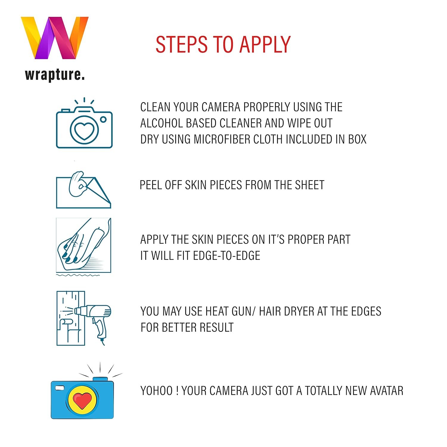 WRAPTURE. DSLR Camera Skin is made of materials imported from USA & Germany.These skins are printed in High Resolutrion and in slow mode, that matures the print colour properly so that it doesn’t fade or scratch.These skins are manufactured and cut in state-of-the-art unit that fits properly to your camera. We have skins made for brands like Canon, Nikon, Sony, Fujifilm and more. Our creative designers design the best of designs that improves the look of your camera.