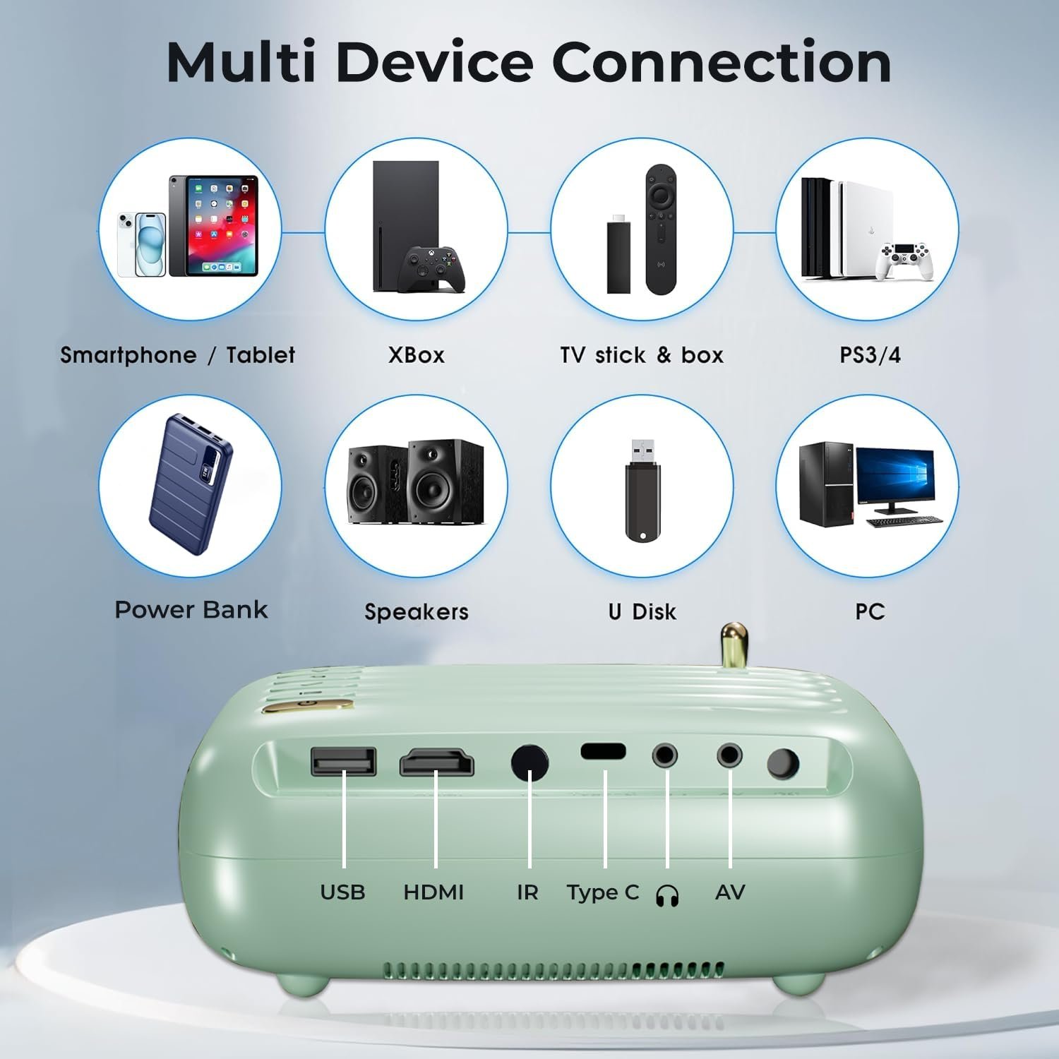 【Connectivity】: 1 x HDMI to connect Set Top Box, Fire TV Stick, PC / Laptop, DVD, Play Station | USB to power & connect hard drives and other USB devices | 3.5mm Audio & AV. USB Screen Mirroring for iOS devices using standard charging cable, Bluetooth 5.1 for pairing soundbar, BT headsets