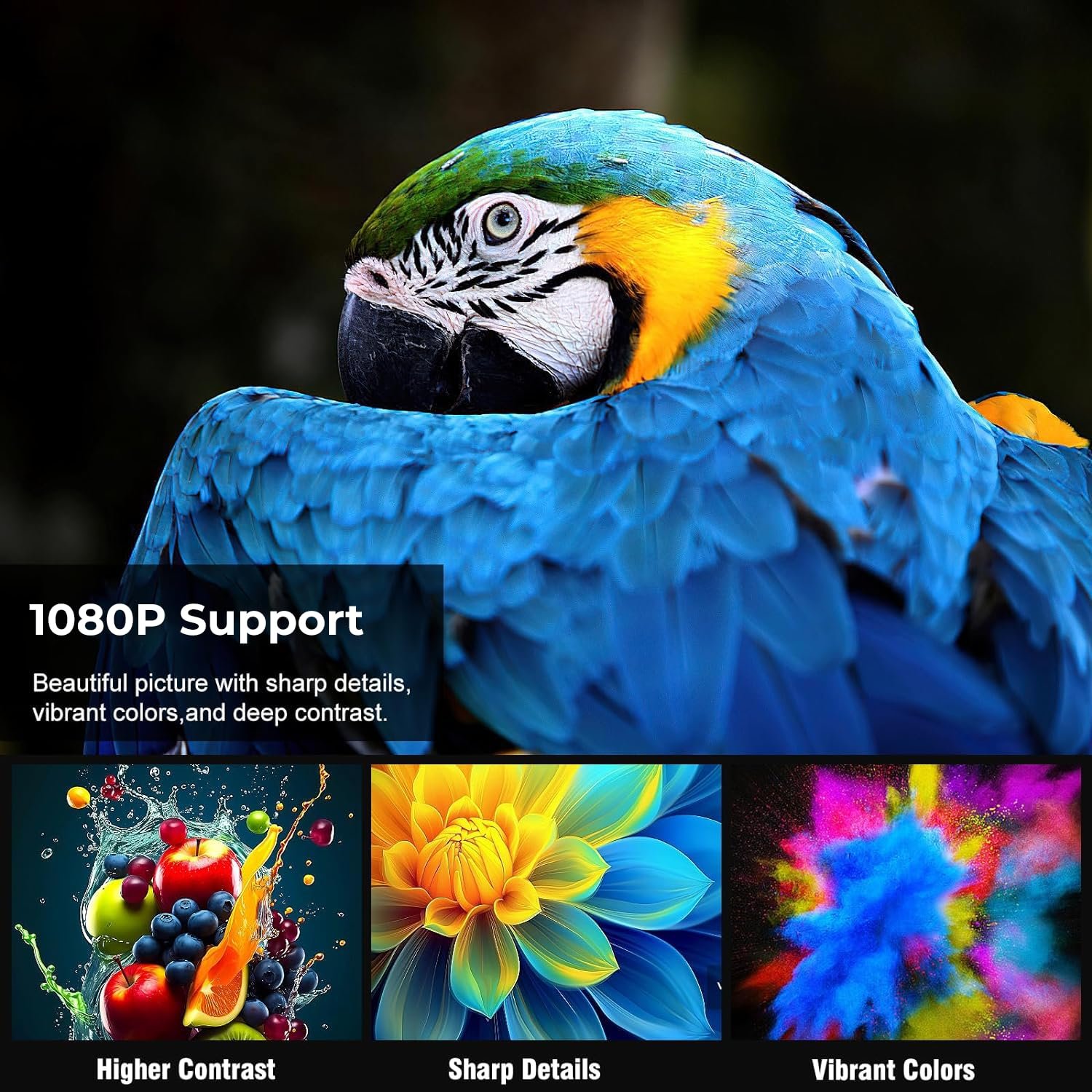 【Display】: +95% Brightness Upgraded from previous model, Electronic Keystone, Full HD Support, Native 720P | 3900 Lumens, 350 ANSI, LTPS Display, Max Screen Size 447 cm (176 inch) | 2000 : 1 Contrast Ratio, Lamp Life” – 50000 Hours