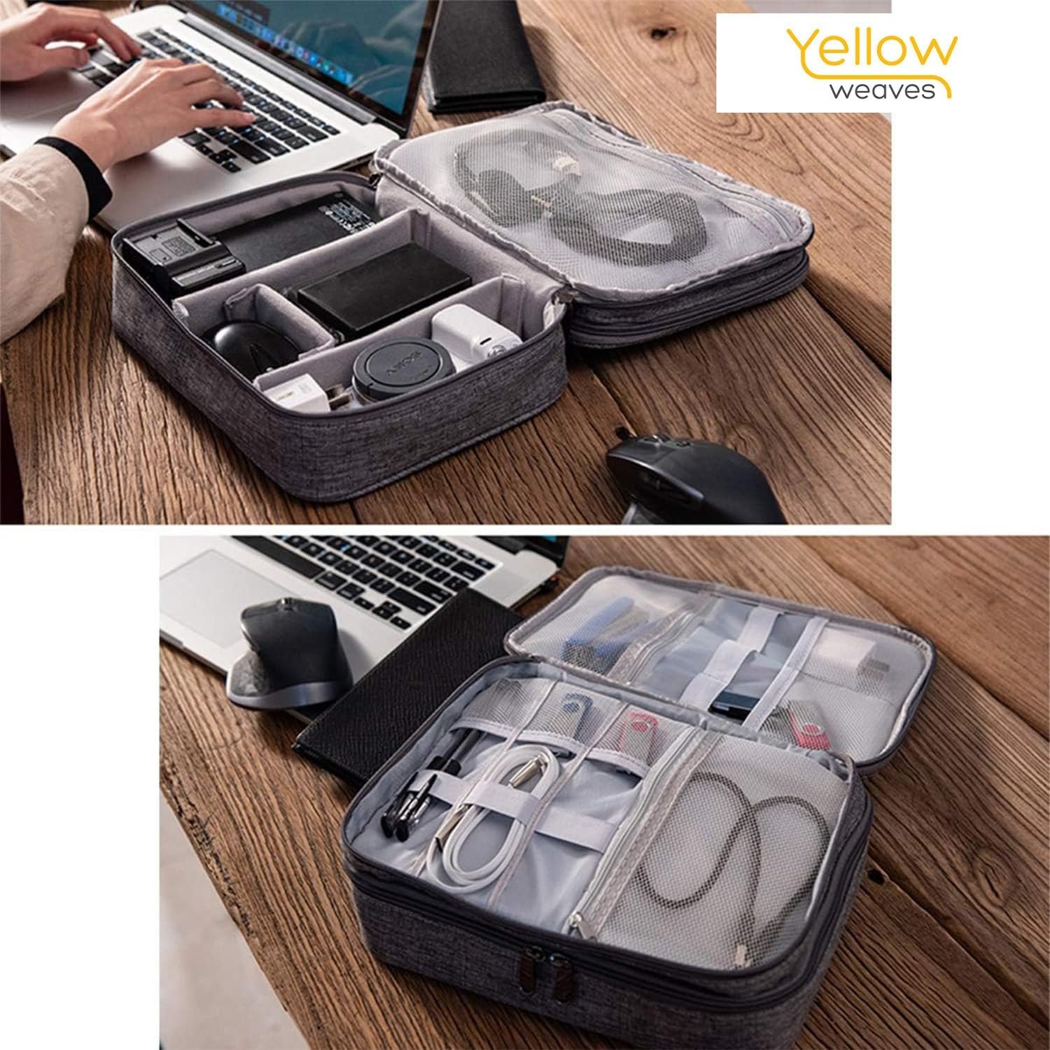 Tired of tangled cables and misplaced gadgets? The Yellow Weaves two layers electronics accessories Organizer Case is here to rescue you from the chaos of electronic accessories. Designed to keep your cables, chargers, earphones, and other gadgets organized and easily accessible, this organizer case is a must-have for anyone on the go.