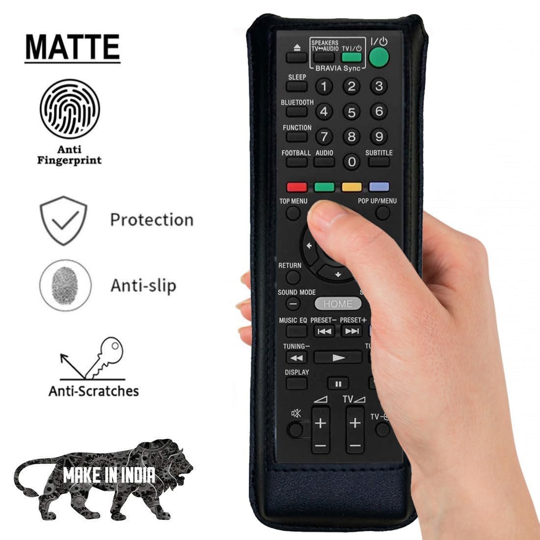 Premium synthetic leather with soft non-scratch microfiber interior. Provides protection for the remote against scratches, greasy dirt and abrasions.