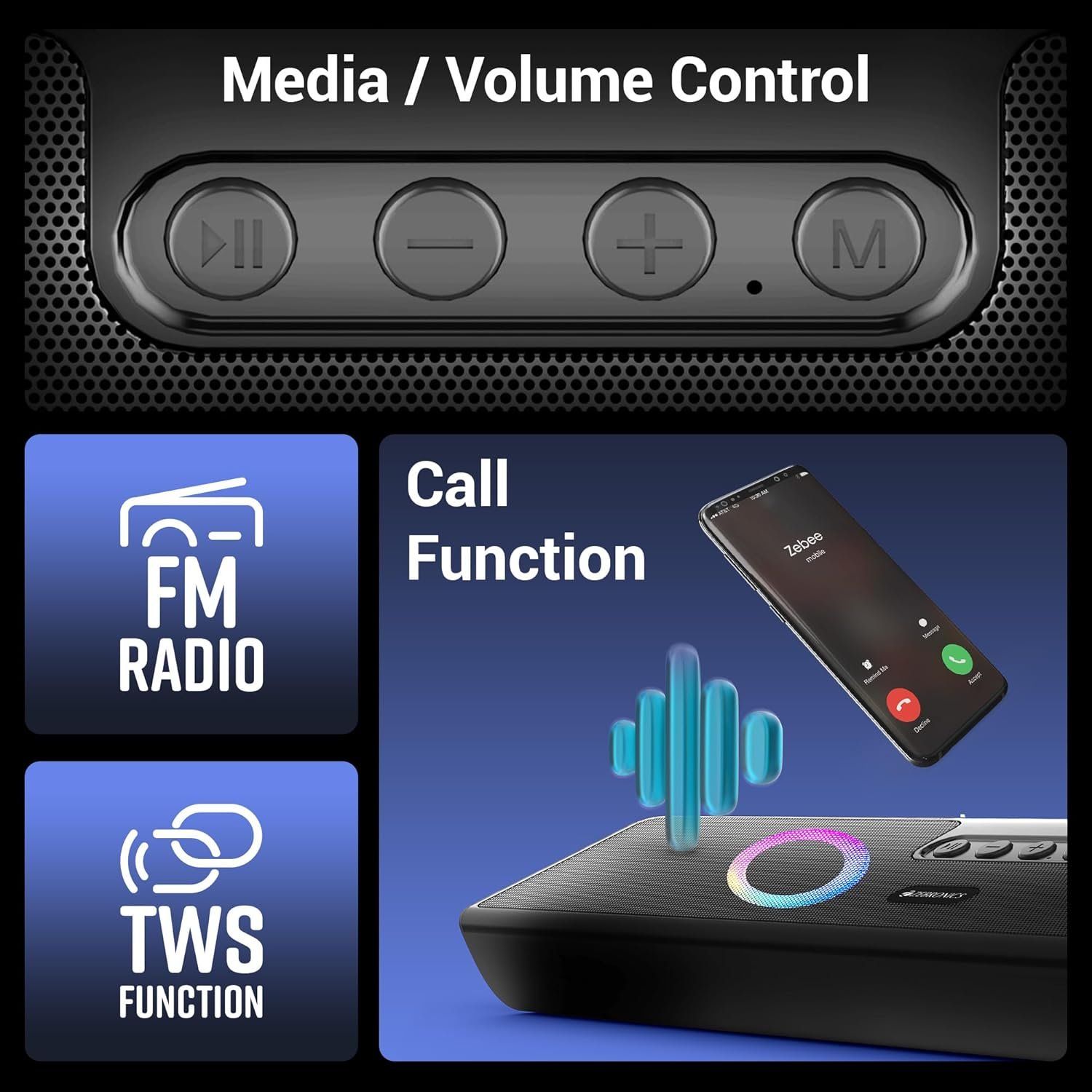 RGB LED lights- To light up your mood, the ZEB-Astra 35 speaker is designed with colorful RGB LED lights.