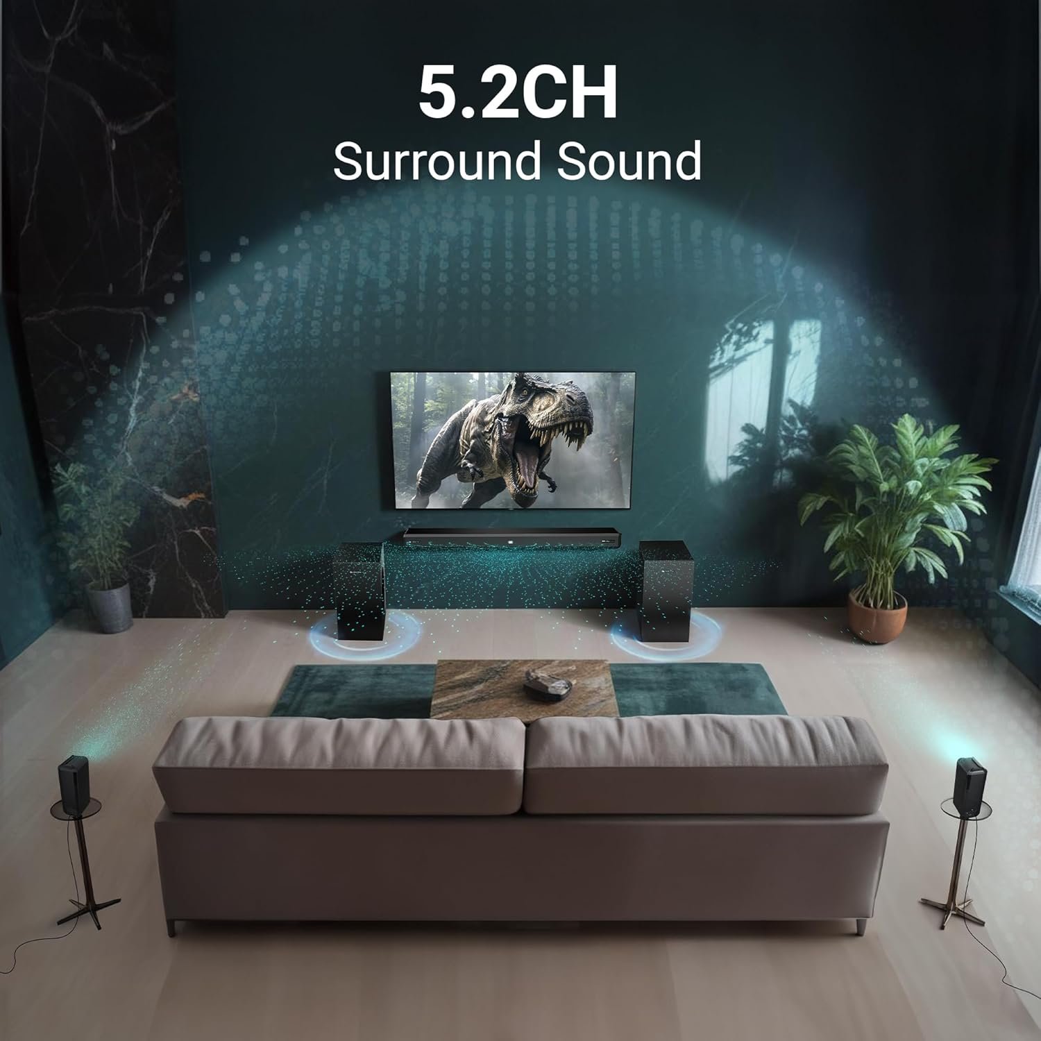 The Soundbar’s 5.2 CH surround sound delivers rich, detailed audio