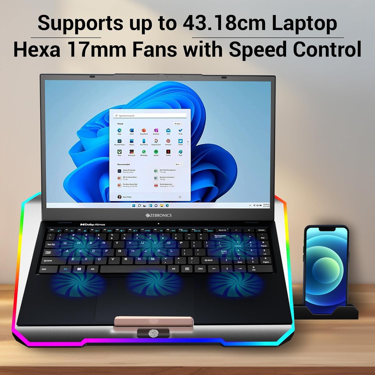 Powerful cooling: To cool your laptop that releases excess heat due to overworking, the laptop stand is equipped with six 70mm fans. The fan speed of these fans can be adjusted to eliminate the dissipated heat and ensure optimal performance.