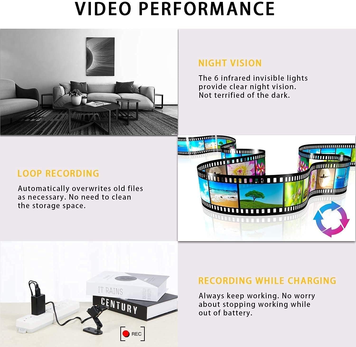 QUICK INSTALL & EASY TO USE – Attaches Instantly in Seconds,Just insert a micro SD card into mini security camera, and then start recording.Simply upload to computer or laptop to easily retrieve and share video footage. It Can be Used as a Surveillance Camera as It Features Loop-cycle Recording, Saving the Storage Space Efficiently.