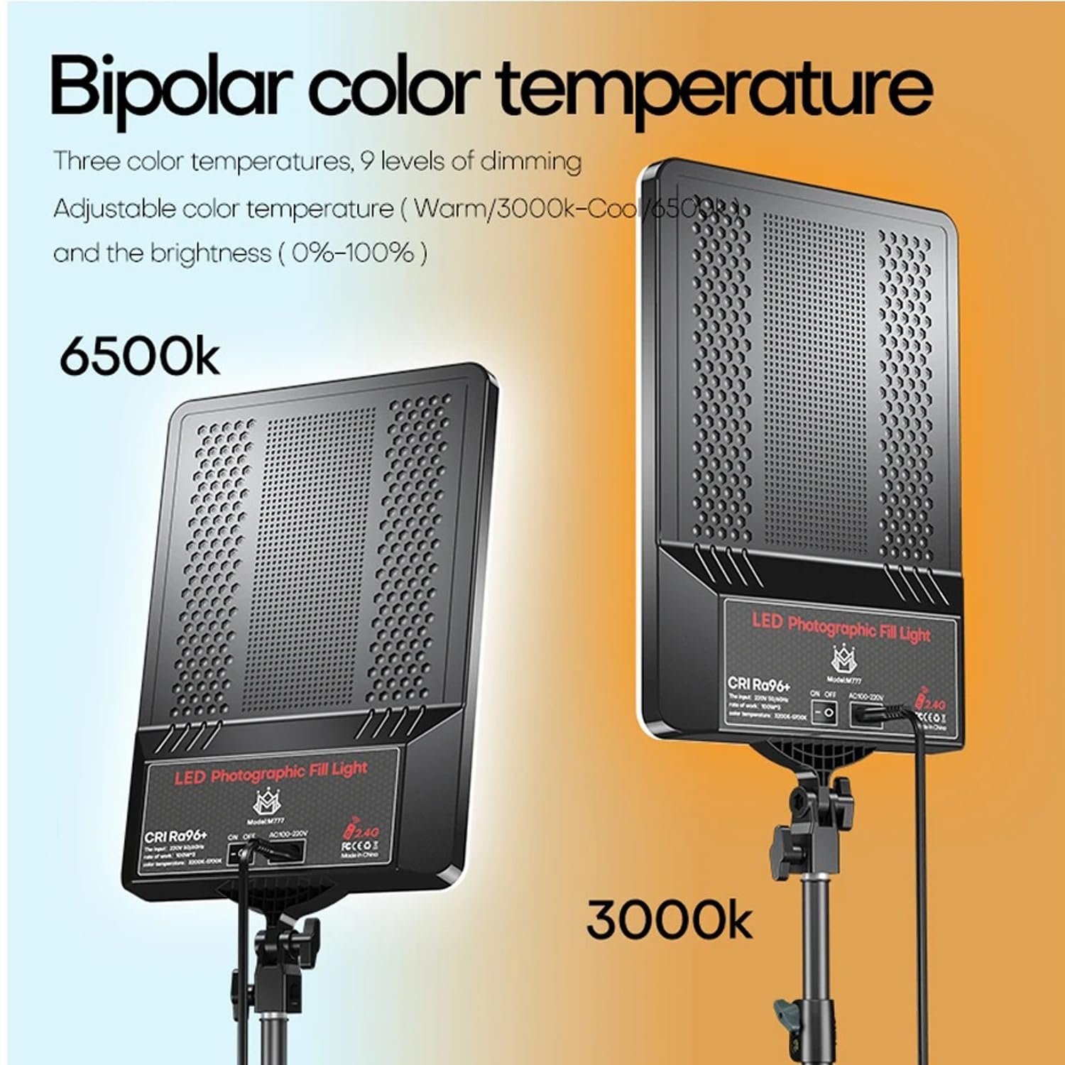 Three-Color Modes: Warm (3200K), Natural (4500K), Cool (6500K).