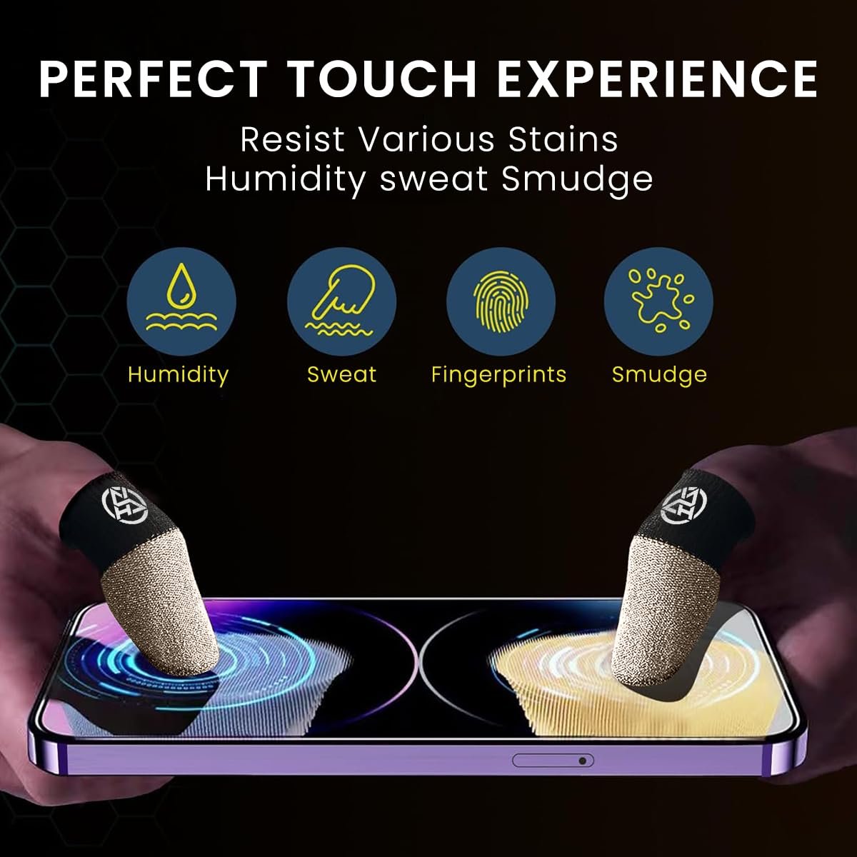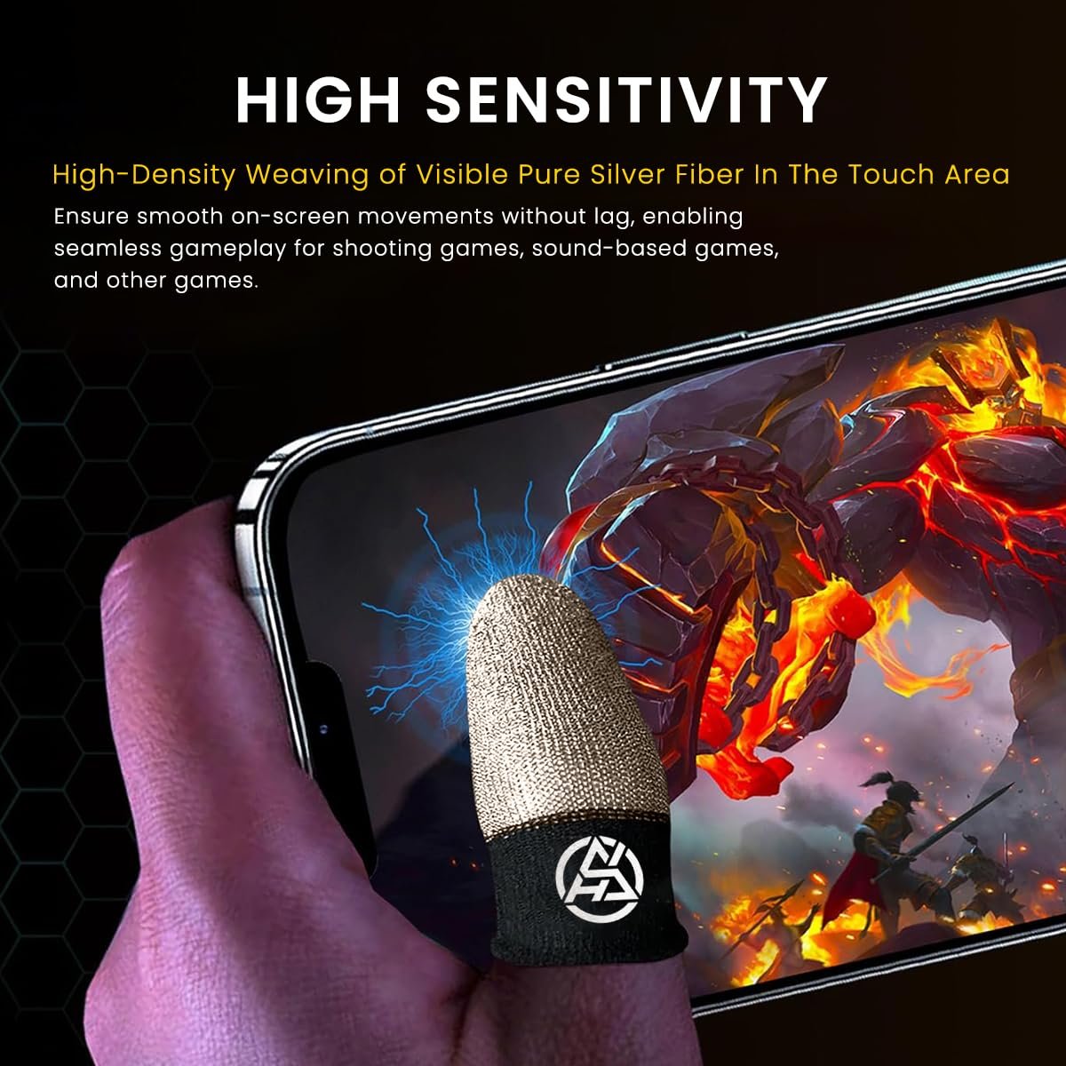 ENHANCED GAMING EXPERIENCE: Elevate your gameplay with these gaming finger sleeves crafted from superior silver fiber. Designed for unbeatable responsiveness, they ensure optimal static electricity transfer from your fingertips to your mobile device. Experience exceptional precision with high sensitivity, even during rapid tapping. Buy now and get 4 sleeves and a metal storage case.