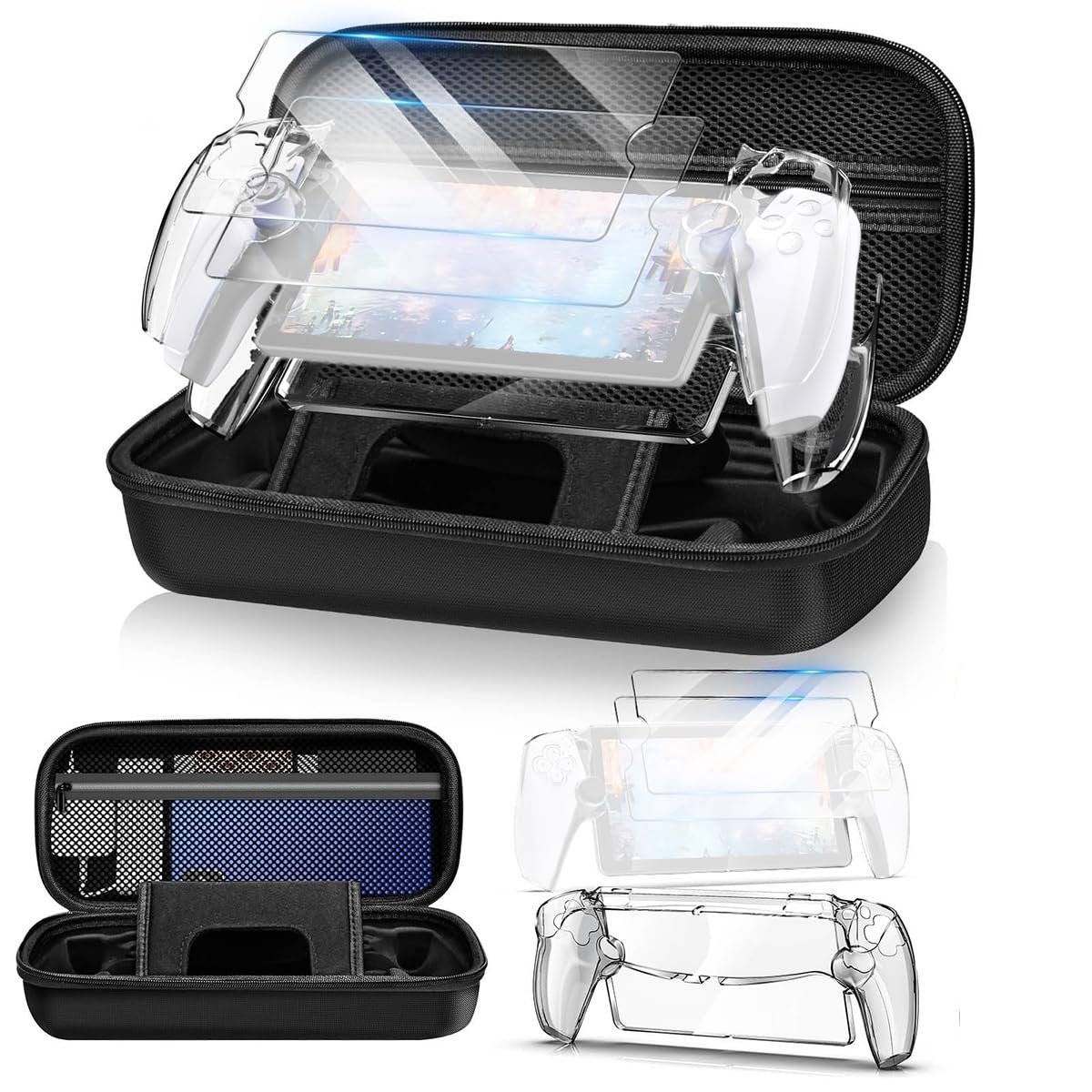 – Travel Case for Playstation 5 Portal Remote Player, 8 in 1 Accessories Kit for Portal Remote Player, with Hard Shell Carry Case, Protective Cover, 4 Grip Covers, 2 Tempered Glass Screen Protectors
